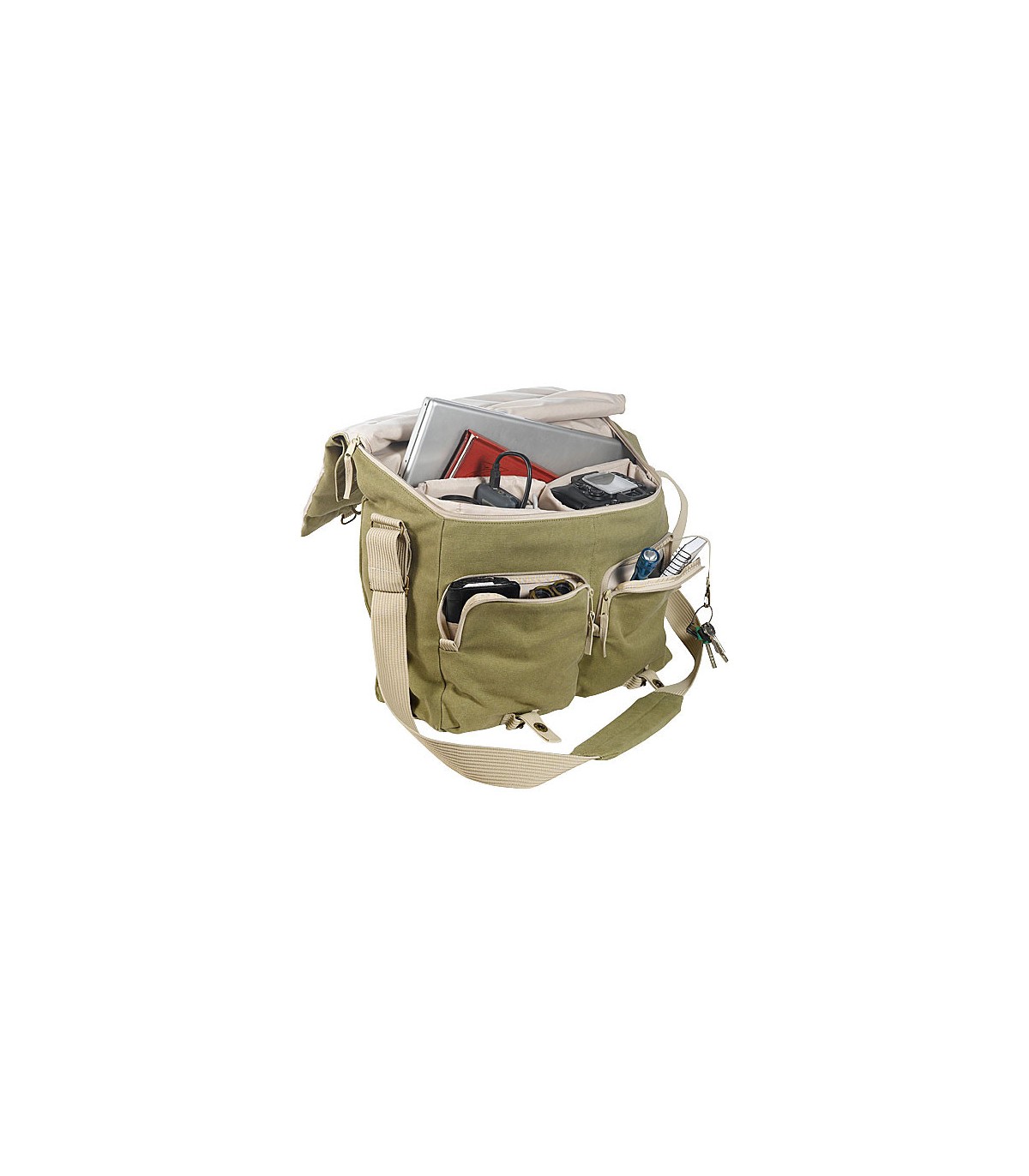 جنس رویه کتان و استفاده از پد ضربه گیر در بخش داخلی برای حمل وسایل شخصی، دوربین عکاسی و فیلمبرداری و لپتاپ