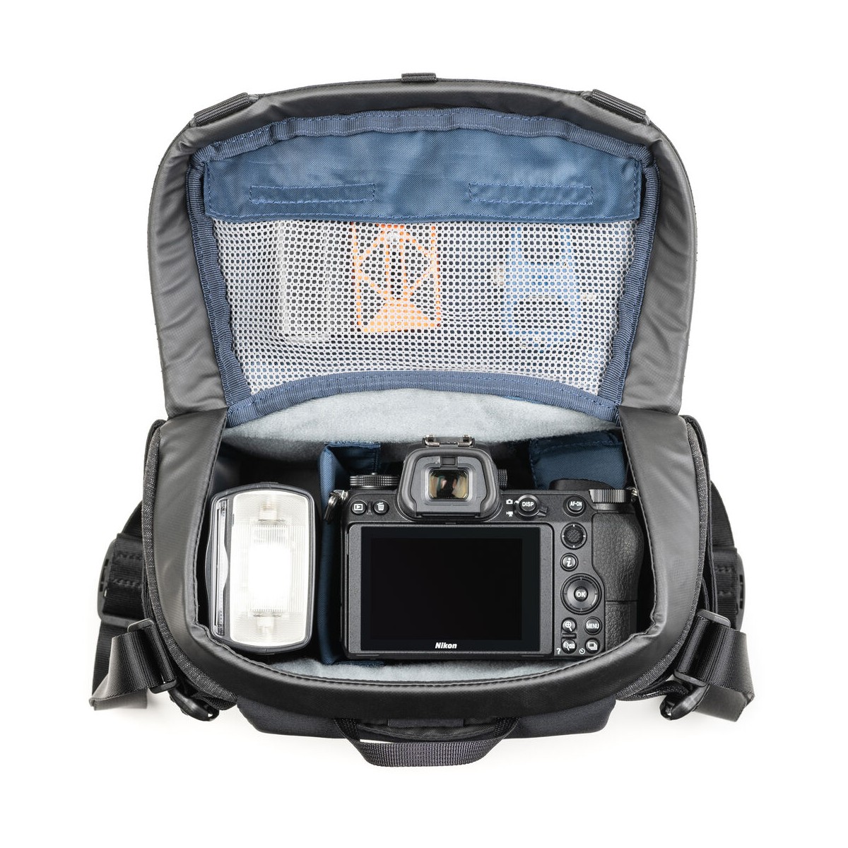 کیف شانه‌آویز SpeedTop 15 دارای درب آهنربایی است که امکان دسترسی سریع و بی‌صدا به تجهیزات عکاسی را مهیا کرده است. این کیف طراحی ارگونومیکی دارد و حمل آن بسیار آسان است، همچنین می‌توان تنها با استفاده از یک دست به محفظه دوربین این کیف دسترسی داشت. داخل این کیف فضای کافی برای قرارگیری دوربین‌های بدون آینه‌ای مانند دوربین‌های سونی سری A7، نیکون Z6 و Z7 به همراه لنز ۷۰-۲۴ میلی‌متری f/4 و فلاش در آن وجود دارد.