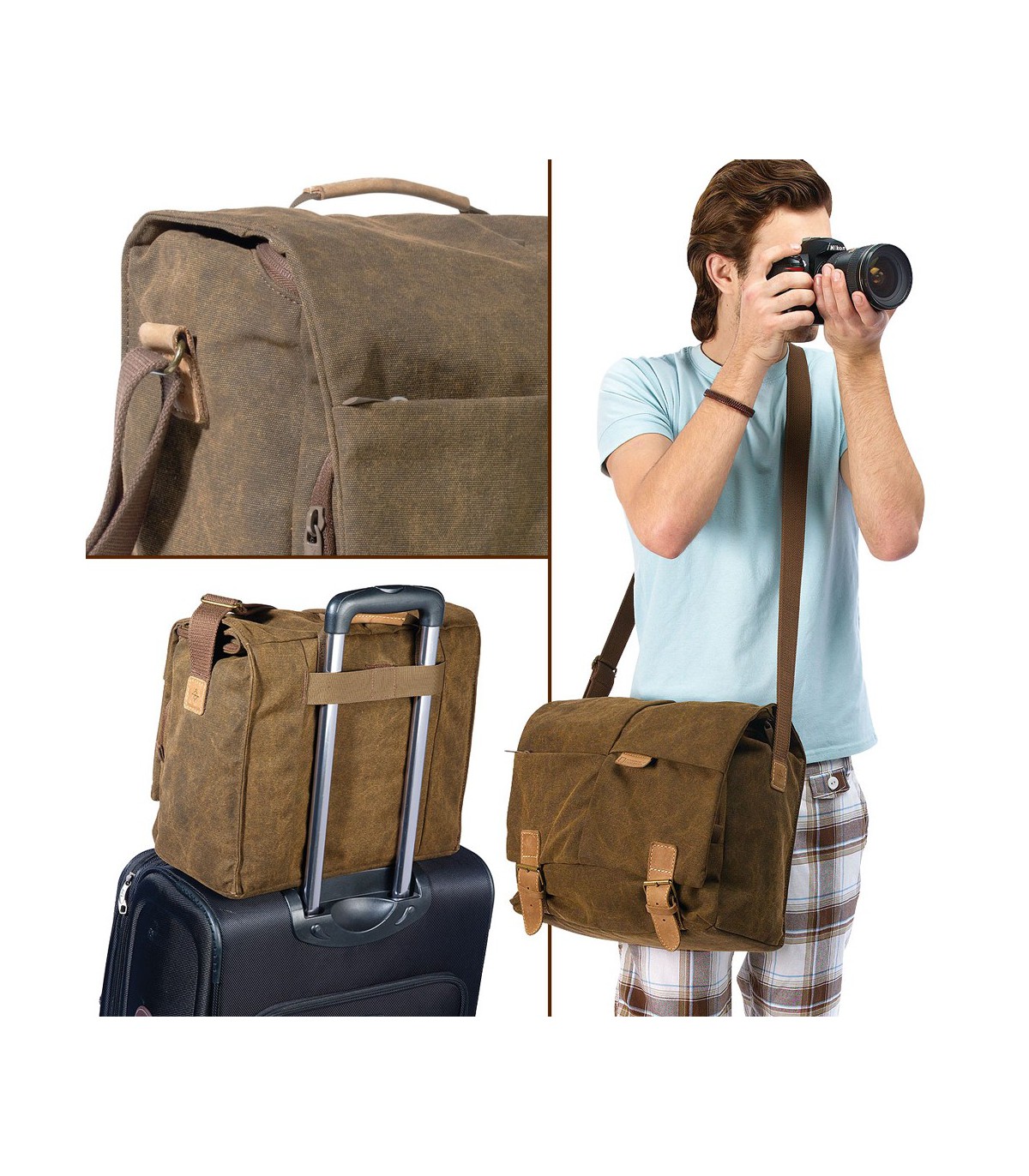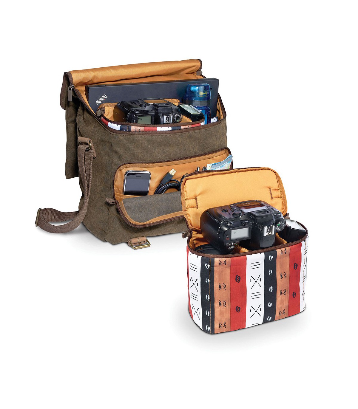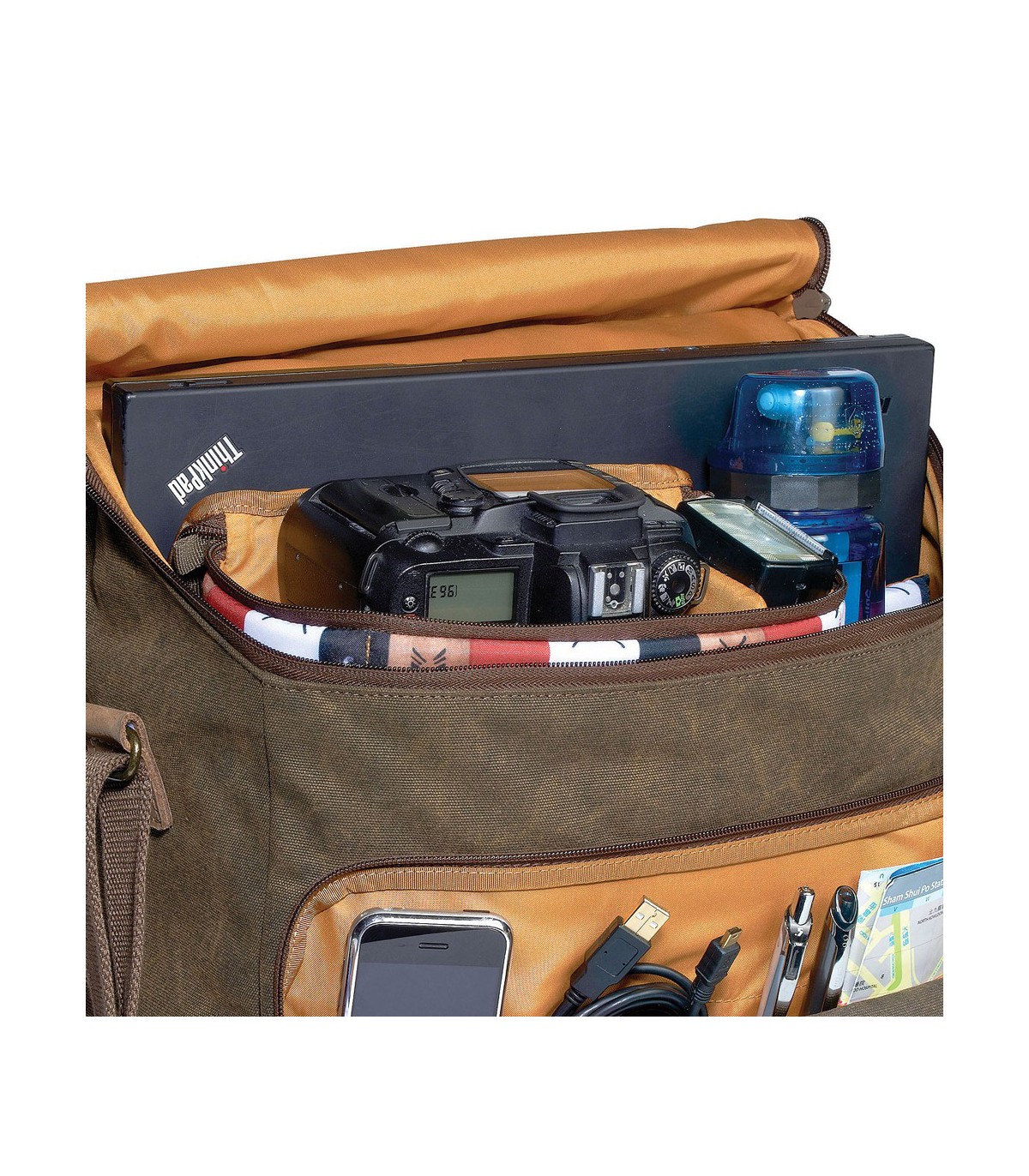 این کیف از یک دریچهی بزرگ زیپی در بالا استفاده میکند تا بتوانید بهراحتی به لوازم داخلش دسترسی پیدا کنید. همچنین دیوارههای جداکنندهی آن قابل جابجایی هستند تا لوازم متعددی با سایز و اندازه مختلف را در آن جای دهید. برای جای دادن انواع لوازم جانبی مانند گوشی هوشمند، کابلها، کارت حافظه و ... نیز سه جیب بر روی آن تعبیه شدهاند. همچنین بند شانهای آن قابل جدا شدن است تا بتوانید بهراحتی آن را با استفاده از دسته حمل کنید.