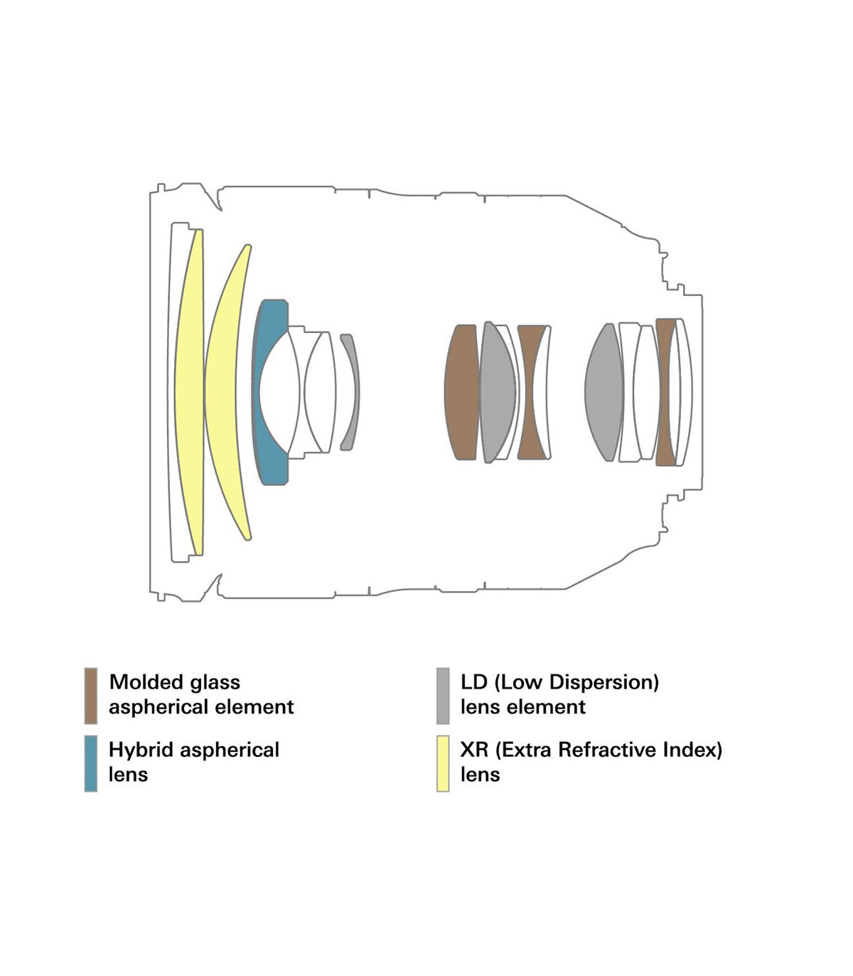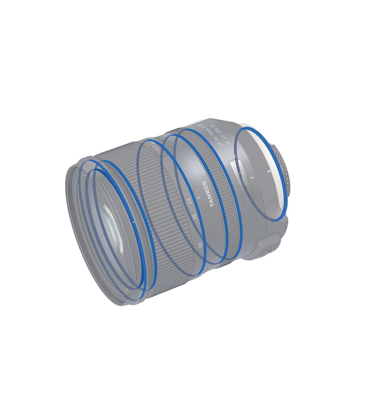 در ساخت این لنز تامرون، ۱۷ عدسی در ۱۲ گروه بکار گرفته شده است که از میان آنها میتوان به دو المان XR، و سه عدسی LD و چهار عدسی غیر کروی aspherical. استفاده از این عدسیهای نامبرده شده، از به وجود آمدن اعوجاجهای هندسی و پراکندگیهای رنگی در تصاویر به میزان قابل توجهی جلوگیری خواهد کرد. ضمناً عدسیهای این لنز از پوششهای BBAR وEband بهره میبرد که هم از بروز پدیدههایی مانند Ghosting ممانعت خواهد کرد و هم باعث میشود تا عکسهای به ثبت رسیده از حداکثر شارپنس برخوردار باشند. درنهایت باید اشاره شود که این لنز تامرون به دیافراگم ۹ تیغه با لبههای مدور مجهز است که برای خلق عکسهایی با پسزمینه محو و بوکههای زیبا کاربرد دارد.