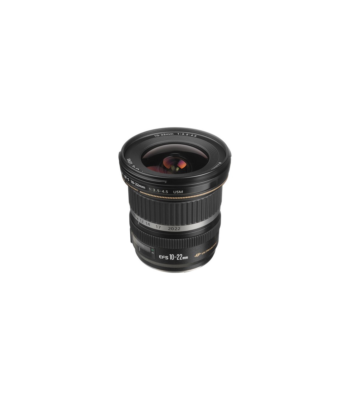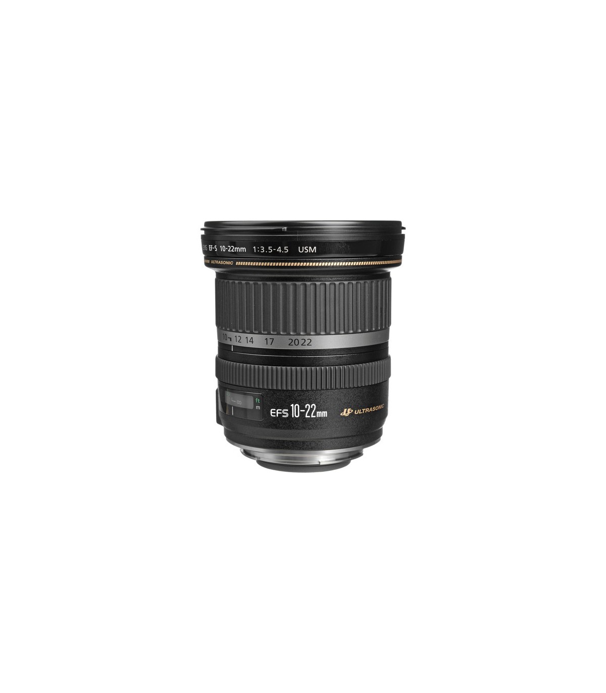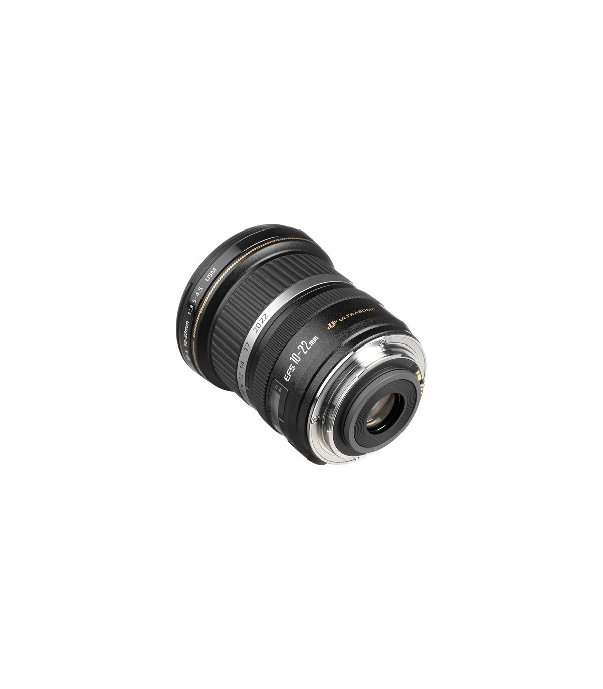 لنز کانن Canon EF-S 10-22mm f/3.5-4.5 USM یک لنز همه کاره واید است که برای دوربین های مجهز به حسگر APS-C و مانت EF-S کانن طراحی و عرضه شده است. فواصل کانونی معادل 16-35.2mm برای عکاسی در طیف وسیعی از شرایط تصویربرداری مناسب است. این لنز به طراحی پیچیده عدسی ها مجهز شده که شامل یک عدسی Super UD و سه عدسی اسفریکال است و سبب کنترل خطاهای رنگی و نوری می شود. پوشش Super Spectra نیز باعث کاهش بروز پدیده های flare و ghosting شده و کنتراست تصاویر را افزایش می دهد. این محصول به یک موتور فوکوس دقیق، سریع و بی صدا از نوع اولتراسونیک USM مجهز شده اما فوکوس دستی نیز همواره در دسترس است. ساز و کار داخلی فوکوس نیز باعث افزایش سرعت عملکرد فوکوس و ثابت ماندن طول لنز در حین این عملیات می شود.