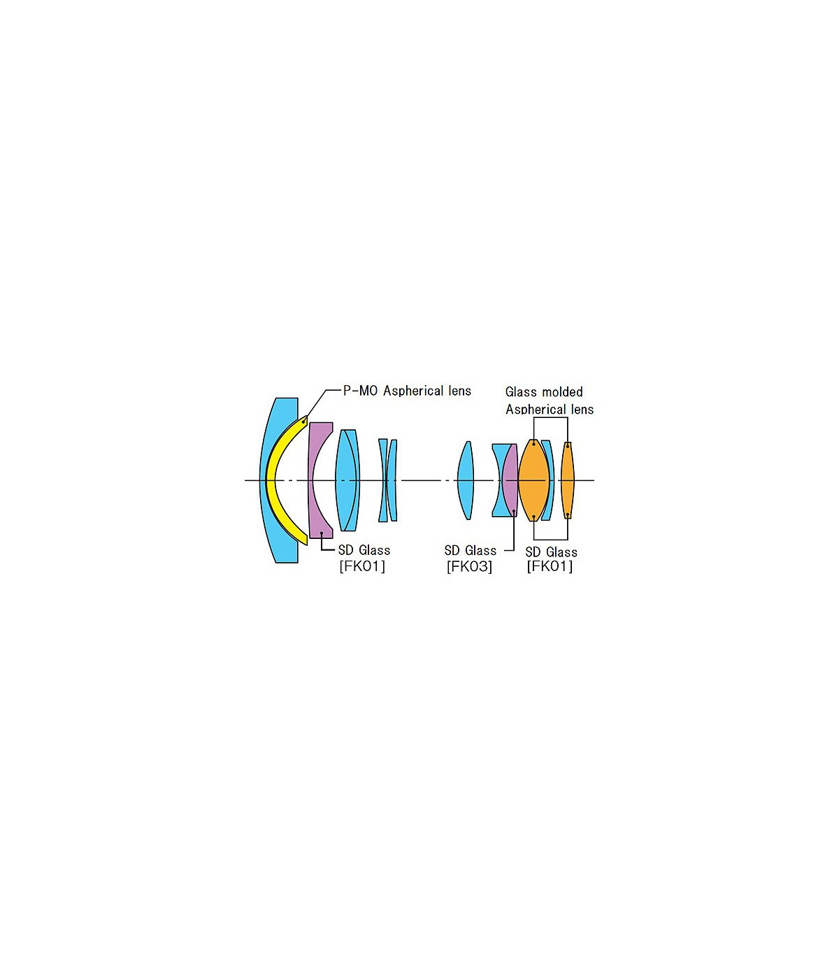 - 1Plastic-Molded Aspherical Element 2Glass Molded Aspherical SD Elements 2Super Low Dispersion Elements