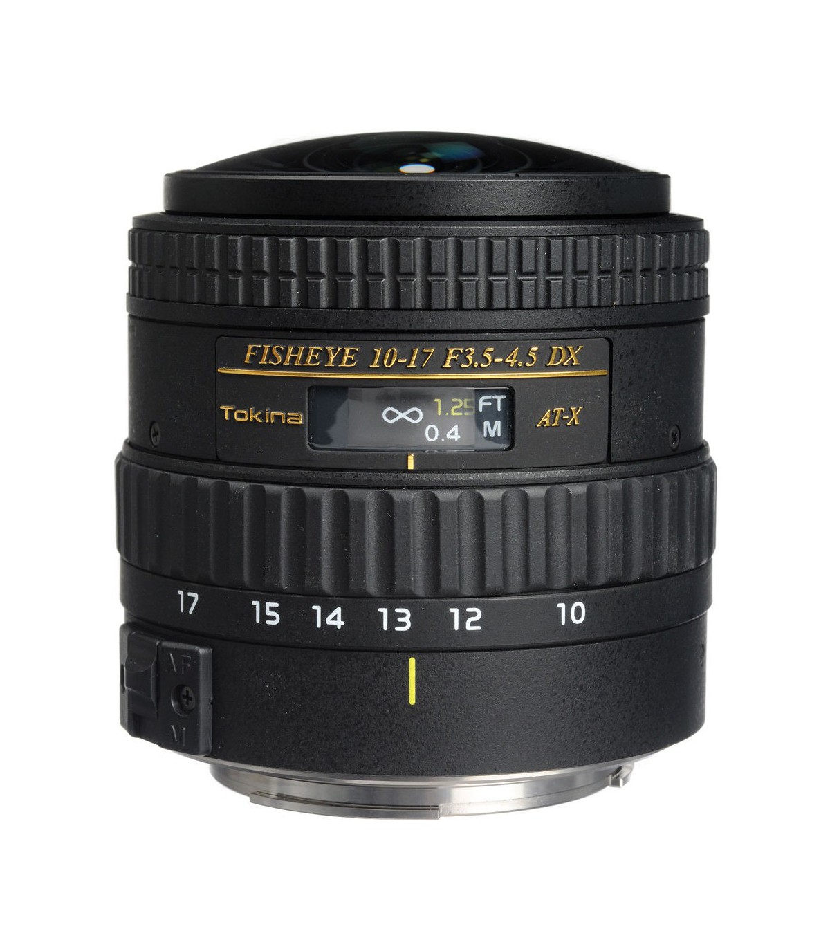 تصاویر ثبت شده با زاویه ۱۸۰ درجه، پوشش بسیار بیشتری از آنچه که چشم انسان میبیند را در تصویر نشان میدهد، به همین دلیل طبیعتاً کنارههای تصویر دارای اعوجاج بسیار زیاد در حد تحدب یا گرد شدگی است. این لنز در انتهای 17mm خود نیز همچنان دارای زاویه پوشش بسیار باز بوده و الترا واید حساب میشود. دیافراگم ۶ تیغهای این لنز از نوع متغیر است و بسته به فاصله کانونی که دارد از وایدترین حالت لنز برابر f/3.5 تا تلهترین حالت برابر f/4.5 تغییر میکند.