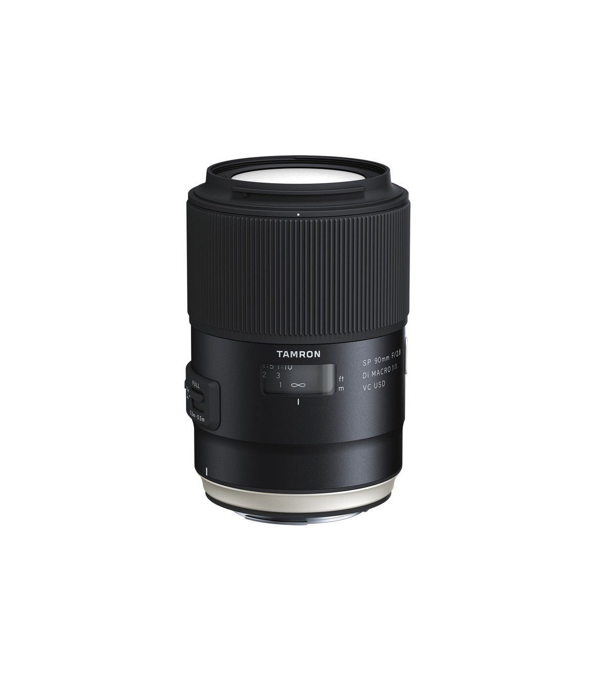 SP 90mm f/2.8 Di Macro یک لنز فیکس ۹۰ میلیمتر میباشد که برای دوربینهای فول فریم کانن با مانت EF طراحی و ساخته شده است. این لنز ماکرو از حداکثر نسبت بزرگنمایی ۱:۱ بهره میبرد و برای عکاسی کلوزآپ به طور ویژهای بهینه شده است. برخورداری از یک سیستم شناور در طراحی اپتیکی این لنز تامرون سبب شده تا بتوان از حداکثر فاصله ۳۰ سانتیمتری نیز بر روی سوژه مورد نظر فوکوس کرد. حداکثر گشودگی دیافراگم F/2.8 در این لنز پرایم، این امکان را فراهم آورده تا بتوان در محیطهای کمنور و شرایط نوری ضعیف عکسهایی با نوردهی و روشنایی مطلوب را به ثبت رساند. SP 90mm f/2.8 Di Macro به موتور فوکوس خودکار اختصاصی تامرون موسوم به USD مجهز گشته که تجربه فوکوس خودکاری دقیق، سریع و بیصدا را برای کاربر به همراه دارد. از این رو میتوان این لنز را برای امور فیلمبرداری نیز به عنوان یک لنز مناسب قلمداد کرد. همچنین امکان بهرهگیری از فوکوس دستی در همه حال نیز وجود دارد که فوکوس دقیق بر روی سوژه را ممکن میسازد. از دیگر ویژگیهای این لنز تلهفوتو میتوان به بهرهمندی از سیستم لرزشگیر تصویر اشاره داشت. به لطف بهرهمندی از سیستم لرزشگیر، تکانهای ناشی از لرزش دست و دوربین تا ۳٫۵ استاپ کنترل شده و تأثیر نامطلوبی بر کیفیت و وضوح عکسهای ثبت شده نخواهد داشت.