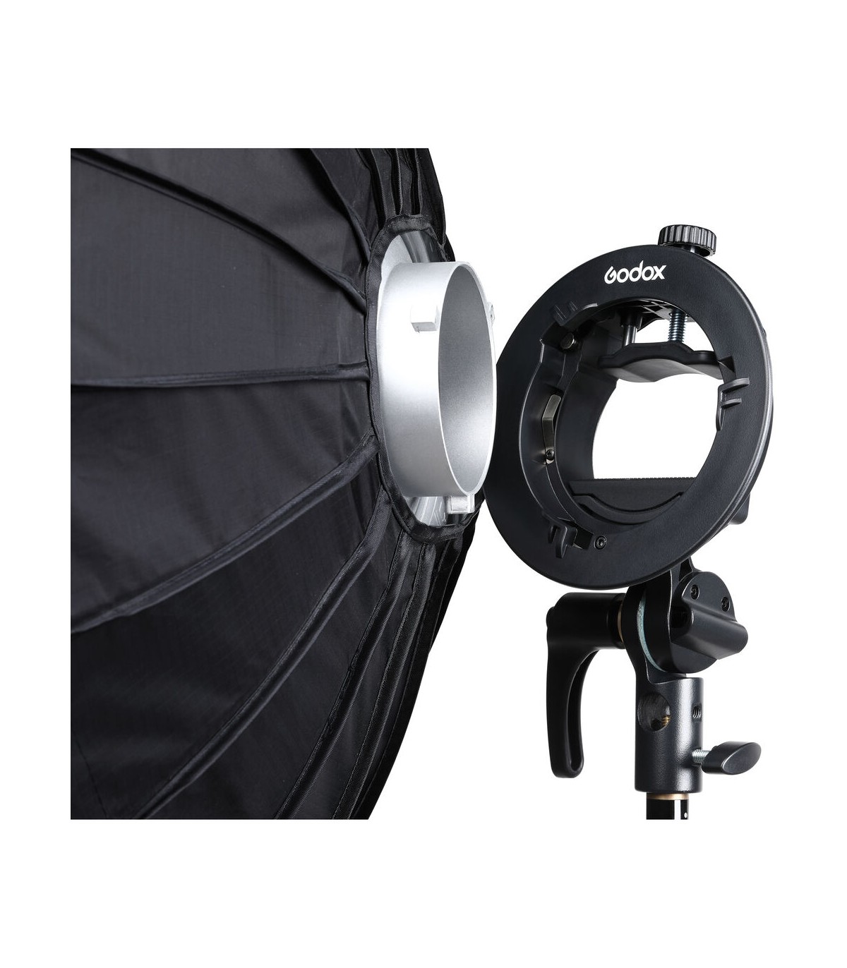 سافت باکس godox S2-80 برای عکاسی خارج از استودیو طراحی شده است. طراحی جمع و جور این سافت باکس و سازگاری آن با انواع فلاش های اسپید لایت ها این سافت باکس را به گزینه ای ایده آل برای جابجایی تبدیل کرده است. اتصال انواع اسپیدلایت ها با فلاش های V1 به صورت افقی یا عمودی به براکت این سافت باکس ممکن است. براکت S2 اندازه مناسبی دارد و نیازی به سرهم کردن ندارد. برای تنظیم جهت نور سافت باکس godox S2-80 کاقیست زاویه براکت تنظیم شود. یک حفره نیز برای نصب چتر در این براکت در نظر گرفته شده است. یک کیف حمل و نقل نیز به همراه این محصول ارائه شده تا برای جابجایی نیز ایده آل باشد.