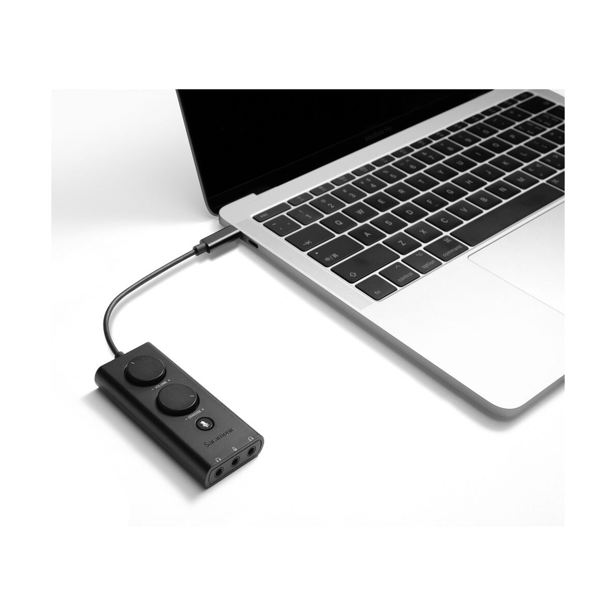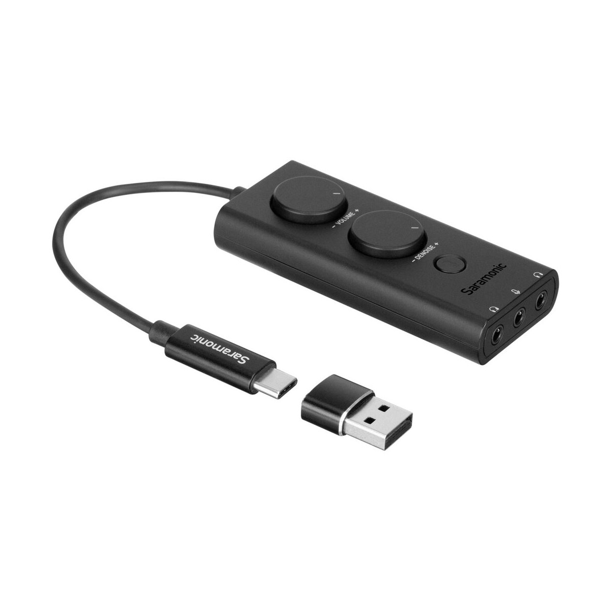 کارت صدای Saramonic مدل SR-EA5 یک رابط صوتی بسیار کوچک و دارای یک کابل USB Type-C با طول ۱۰ سانتیمتر است. همراه با این محصول یک مبدل USB Type-C به USB Type-A نیز عرضه شده که امکان اتصال این کارت صدا به انواع دستگاهها را فراهم کرده است. بر روی این کارت صدا دو خروجی صدا و یک ورودی صدا وجود دارد که امکان اتصال میکروفونهای دارای پورت ۳.۵ میلیمتری TRS و هدفونهای TRS و TRRS را در اختیار کاربران گذاشته است.