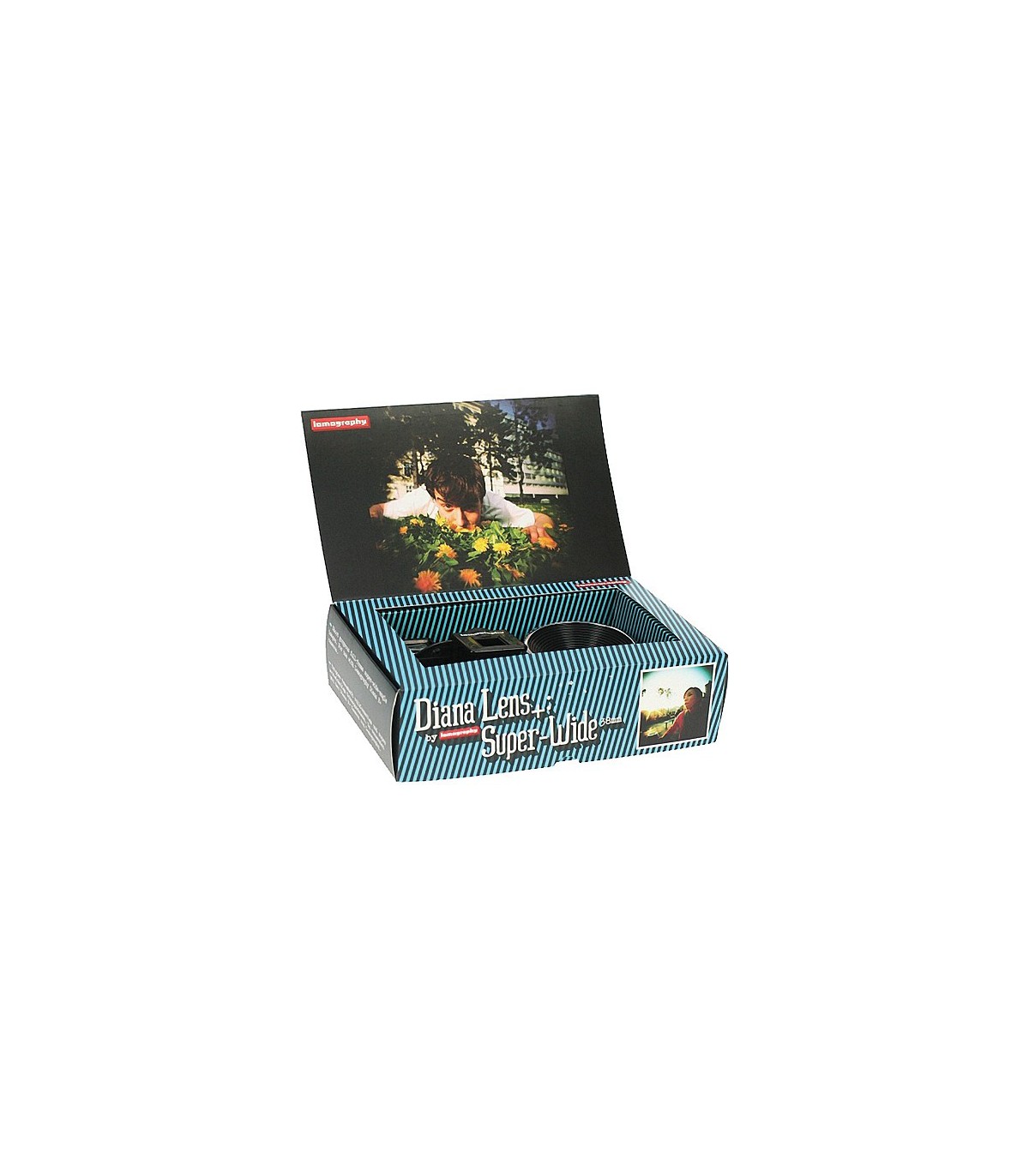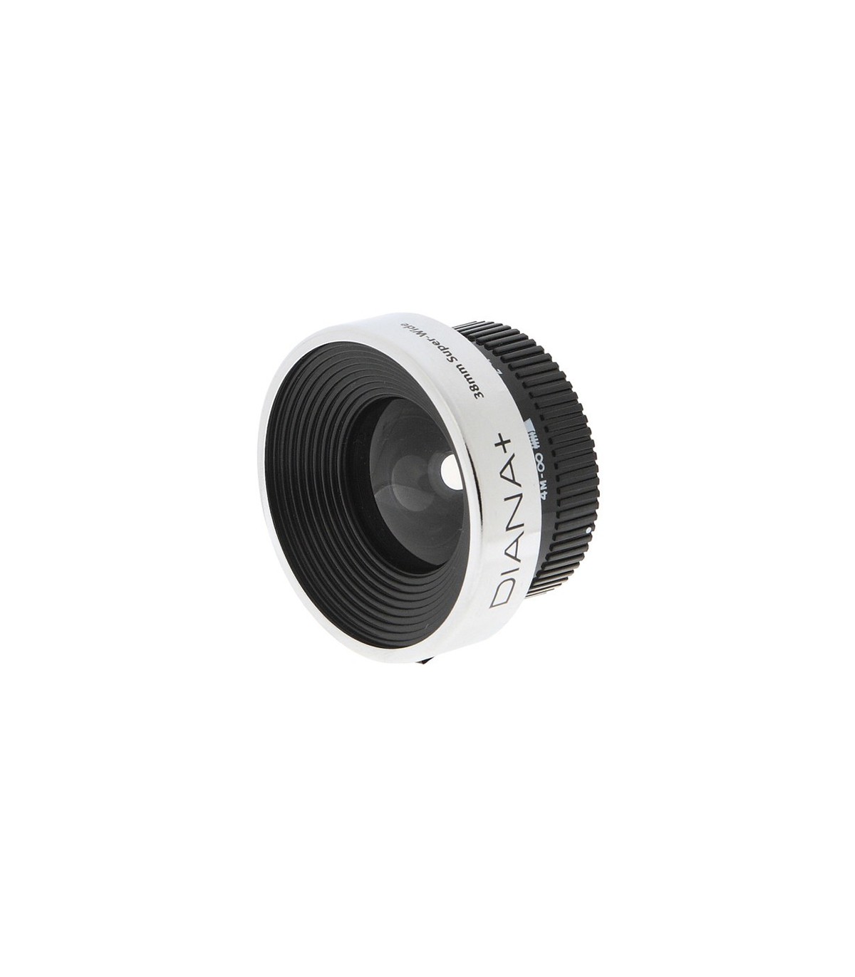 این لنز 38mm سوپر واید لوموگرافی از فاصله کانونی معادل 25mm در حسگرهای فولفریم برخوردار است و زاویه دید ۱۲۰ درجه را فراهم میکند. Lomography 38mm Super Wide Angle Lens این امکان را فراهم میآورد تا با دوربین Diana+، پرسپکتیو و چشمانداز عریضتری را در کادر خود جای دهید. با استفاده از این لنز تصاویر ثبتشده همان جذابیت و تم کلاسیک که از مشخصههای اصلی دوربینهای Diana+ میباشند را حفظ خواهند کرد. همچنین استفاده از این لنز سبب میشود تا تصاویر ثبتشده دارای تم تیرگی در گوشههای کادر (ویگنتینگ) باشد که باعث جذابیت بیشتر عکسها میشود. لازم به ذکر است که همراه این لنز یک منظره یاب اختصاصی و مانت مخصوص آن نیز ارائه میشود.
