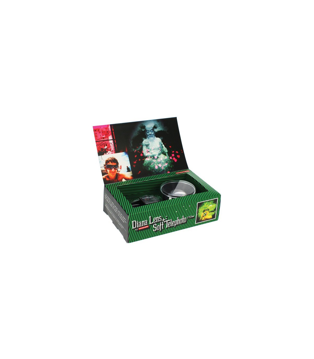 لنز تلهفوتو Lomographic 110mm مخصوص دوربینهای سری Diana طراحی و ساختهشده که برای ثبت عکسهای پرترهی سافت بسیار مناسب است. با استفاده از این لنز و قاب نگهدارنده منظره یابی که همراه آن وجود دارد، میتوان عکسهایی متمایز گرفت که دارای تیرگی در گوشههای تصویر میباشند. عکسهای ثبتشده با Lomographic 110mm دارای عمق میدان زیبایی است که باعث میشود تا سوژه بهخوبی از پسزمینه تصویر متمایز شود. لازم به ذکر است که توجه به این مسئله هنگام ثبت تصاویر پرتره بسیار مهم و ضروری خواهد بود. با استفاده از این لنز مقرونبهصرفه میتوان همان عکسهای خیالی و وهمآلودی را گرفت که تجهیزات گرانتر قادر به ثبت آن هستند.