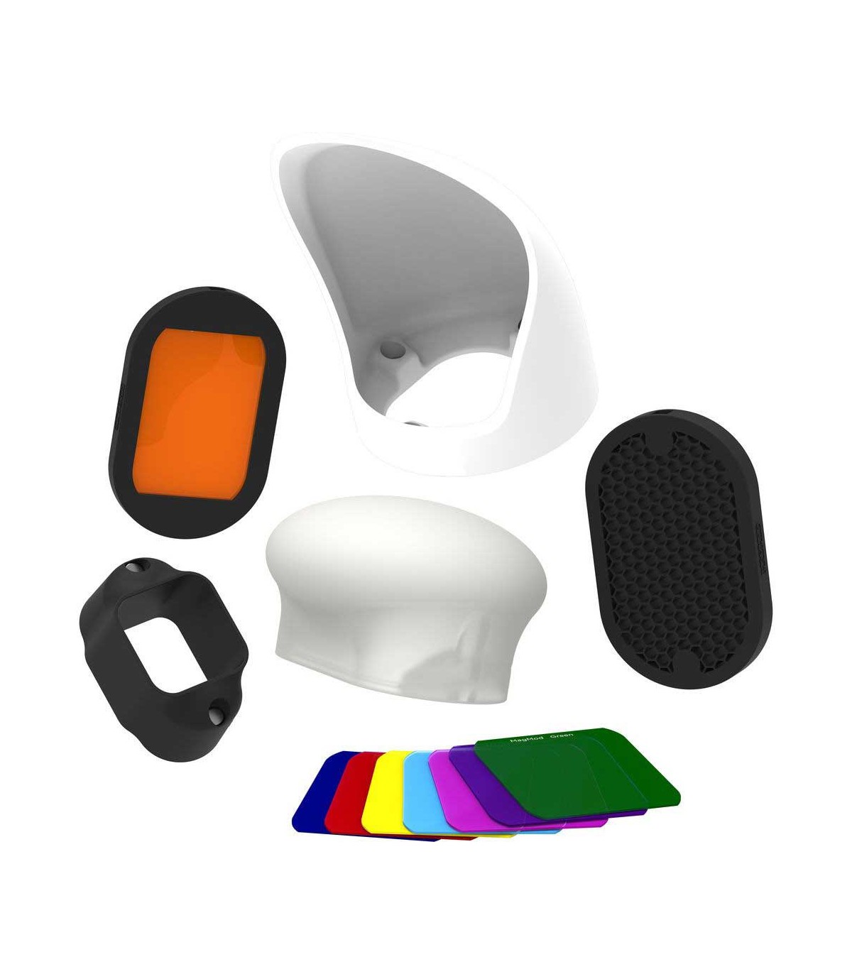 این کیت لوازم جانبی اسپید لایت یک مجموعه کامل و بسیار کاربردی است که برای کار در کنار فلاشهای رودوربینی طراحی و تولید شده است. این کیت دارای یک هولدر است که با اتصال آن به فلاش خود میتوانید سایر لوازمجانبی موجود در این کیت را با مانت آهنربایی به فلاش خود متصل کنید. اجزای داخلی این کیت شامل موارد زیر میباشد:
