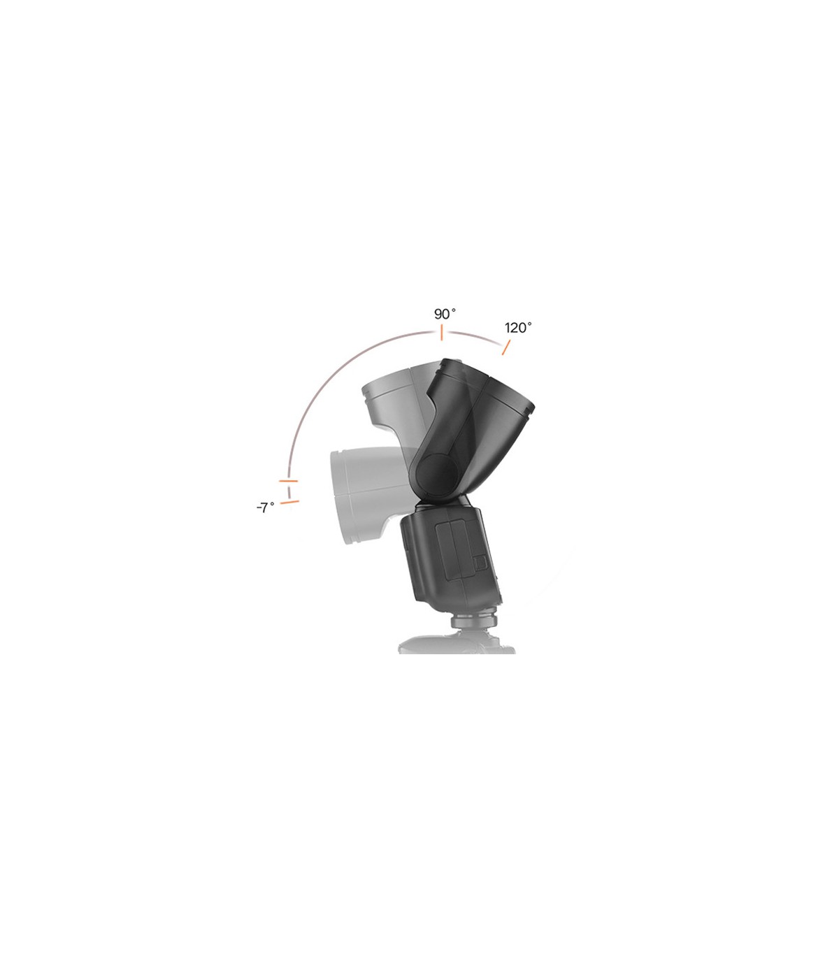 - تنظیم عمودی سر فلاش در زوایای °7- تا °120