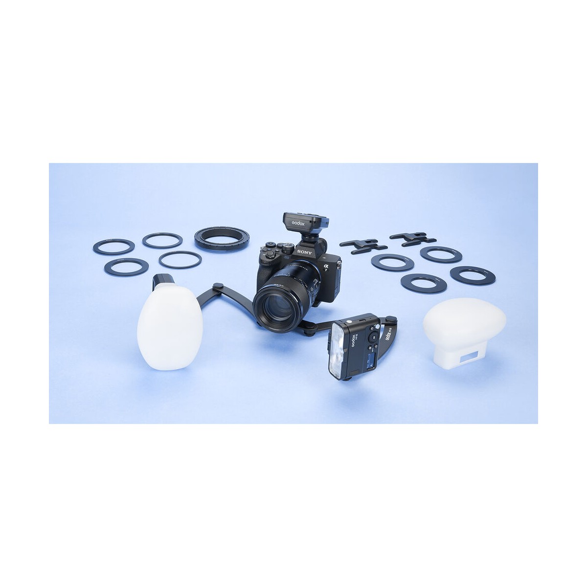| محتویات جعبه | ۲ عدد ماکرو فلاش MF-12، پایه حلقهای MF-AR، آداپتور کیت، ۲ عدد آداپتور (Cold Shoe)، ۲ عدد پایه فلاش، کیف حملونقل، ۲ عدد دیفیوزر دندانی MF-DD و ۲ عدد کابل USB-C |