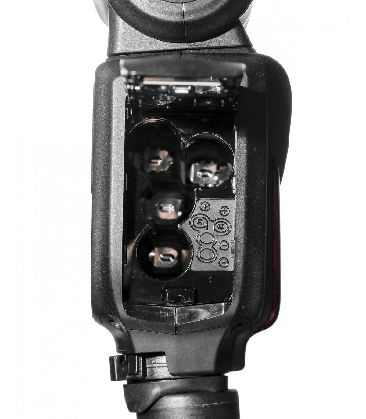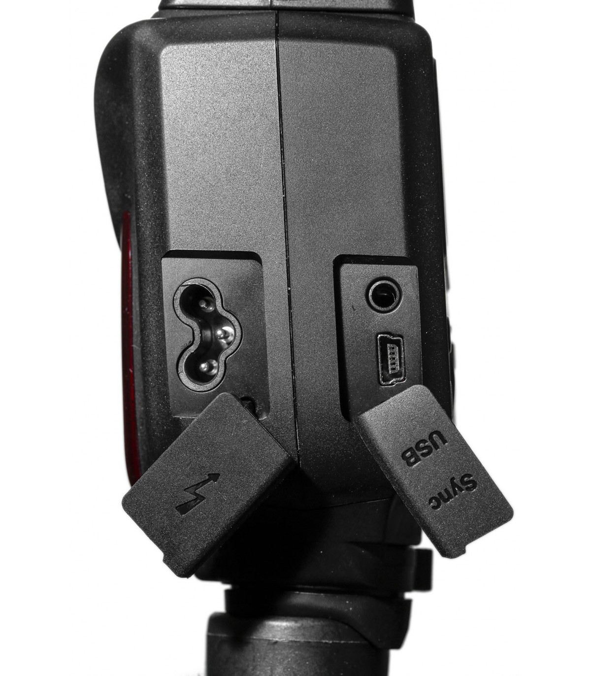 از دیگر درگاه‌های این فلاش می‌توان به ورودی باتری خارجی اشاره کرد. این فلاش که با ۴ باتری قلمی به کار می‌افتد و زمان بازیابی قدرت آن ۰٫۱ تا ۵ ثانیه است - که البته در حالت سریع، حداکثر زمان به ۲٫۵ ثانیه کاهش می‌یابد. کاربر می‌تواند با اتصال مایتراس‌پلاس به باتری‌های خارجی مانند پک باتری ایندرا فوتیکس، علاوه بر کاهش زمان بازیابی قدرت این فلاش، تعداد تخلیه‌ی فلاش را به چند هزار تخلیه با قدرت کامل افزایش دهد.