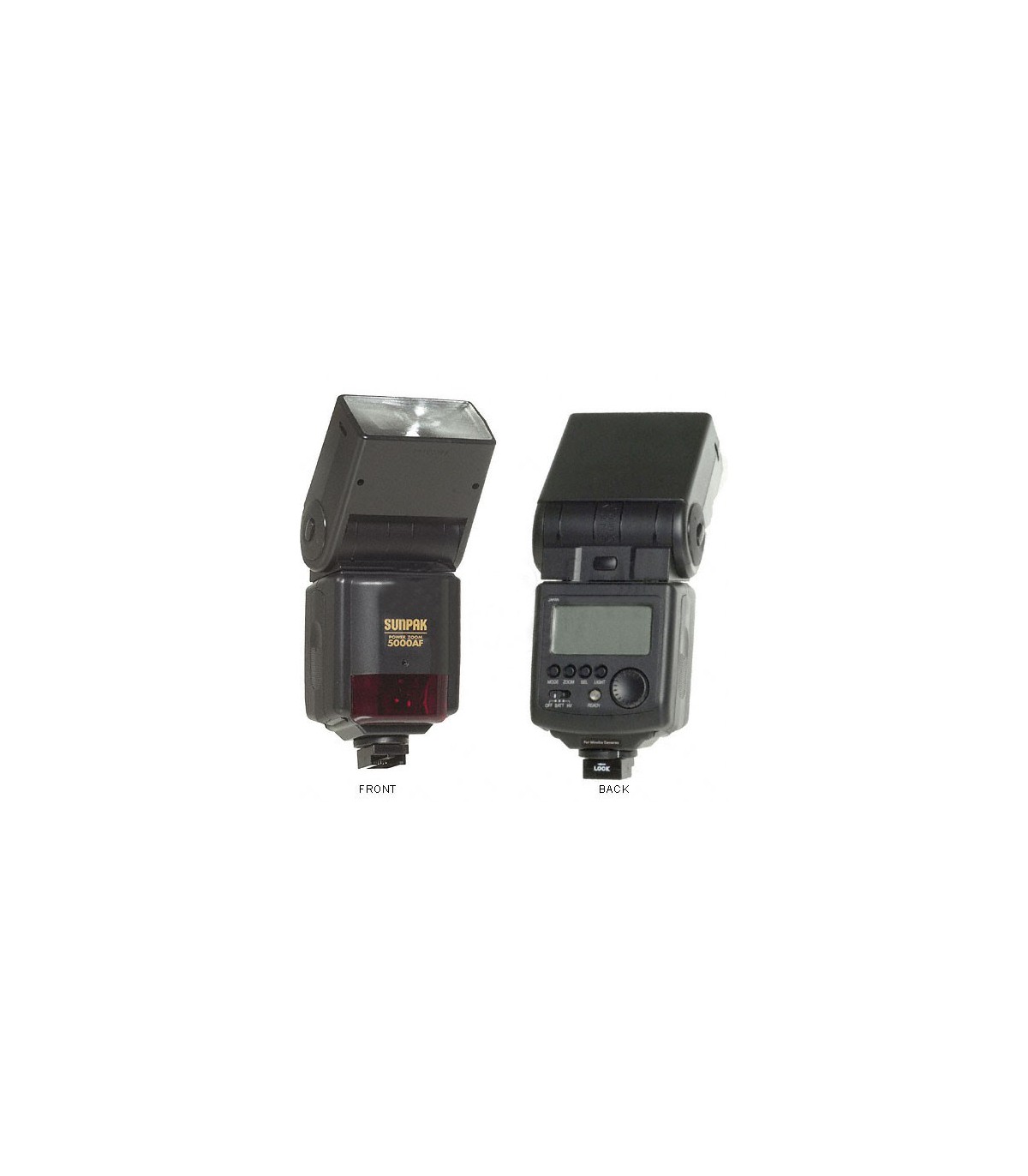 فلاش رو دوربینی SUNPAK 5000AF، انتخابی مناسب برای استفاده با دوربینهای SLR است. این محصول ساخت ژاپن بوده و کیفیت و کارایی بالای دارد. این فلاش دارای قدرت خروجی عالی معادل عدد راهنمای ۵۴ در ISO ۱۰۰ و فاصله کانونی ۱۳۵ میلیمتر است. زاویه سر5000AF در دو محور عمودی و افقی قابل تنظیم است و میزان چرخش آن در محور افقی ۲۷۰ درجه و در محور عمودی بین ۵- تا ۹۰+ درجه است. محدوده زوم این فلاش ۲۸-۱۳۵ میلیمتر است و در صورت استفاده از فلاشهای PZ5000A دیگر نیز امکان استفاده از قابلیت TTL بیسیم وجود دارد. SUNPAK 5000AF دارای حالت تابش استروبوسکوپیک برای تابش فلاش پیدرپی روی یک نوردهی است و ضمناً امکان استفاده از فلاش روی حالت پرده اول و پرده دوم (تابش نور در لحظه اول یا لحظه آخر نوردهی) وجود دارد.