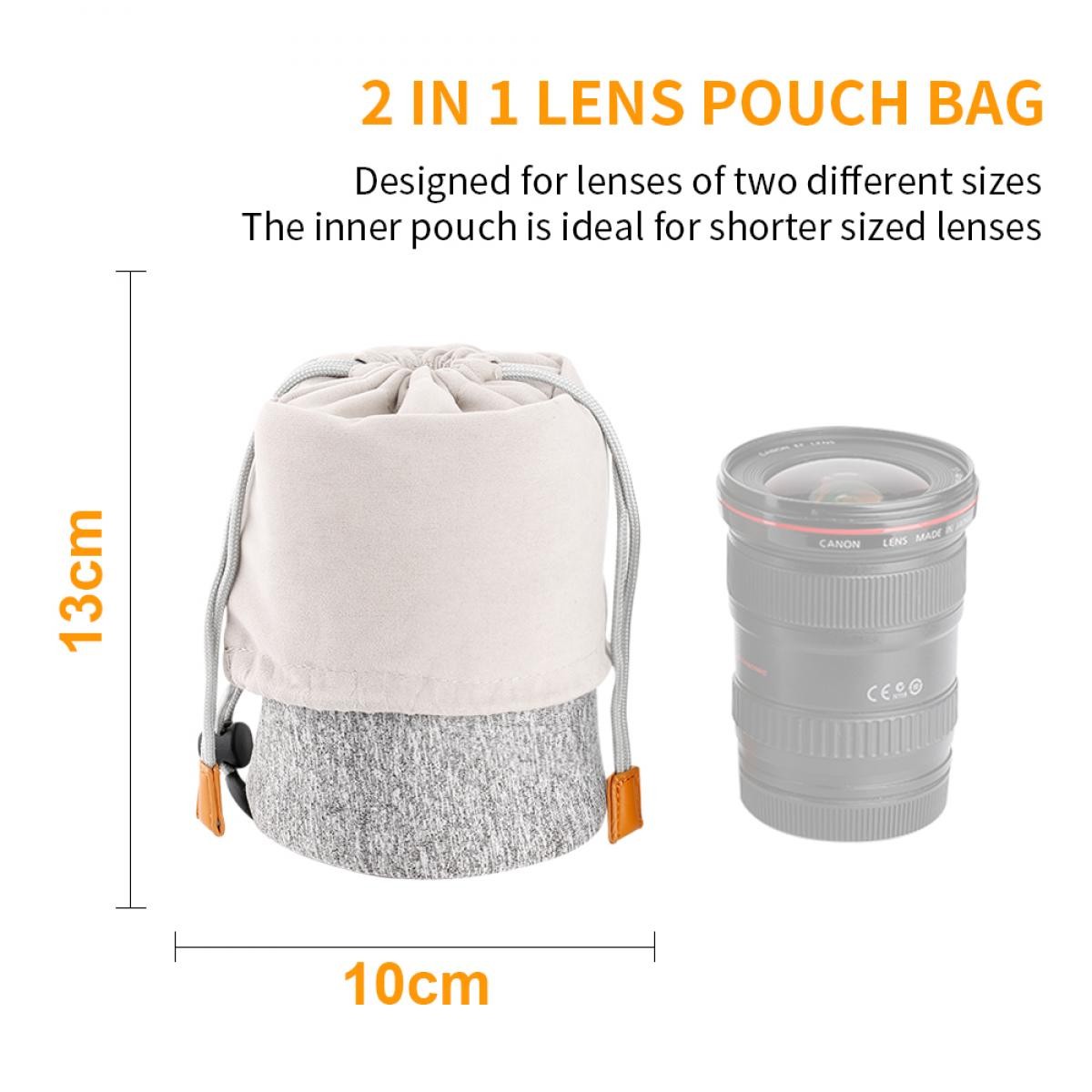 ابعاد این کیف ۱۰×۱۸ سانتیمتر است که آن را برای لنزهای مختلف مناسب میسازد. طراحی فشرده و سبک وزن آن، حمل آسان را امکانپذیر کرده و فضای کمی را در کیف دوربین اشغال میکند.