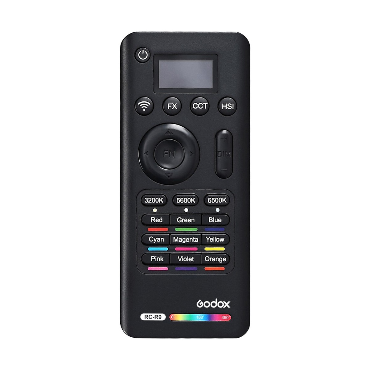 ریموت کنترلر RC-A9 یک ریموت ۲.۴ گیگاهرتزی مخصوص تنظیم و کار با نور باتومی LC500R گودوکس است. با استفاده از این ریموت میتوان شدت نور و رنگ این نور را کنترل کرد. این کنترلر دارای ۳۲ کانال در ۱۶ گروه است که همین موضوع باعث جلوگیری از اختلال در محیطهایی که ترافیک دستگاههای بیسیم وجود دارد، میشود. این ریموت با استفاده از دو باتری سایز AAA قابل استفاده است.