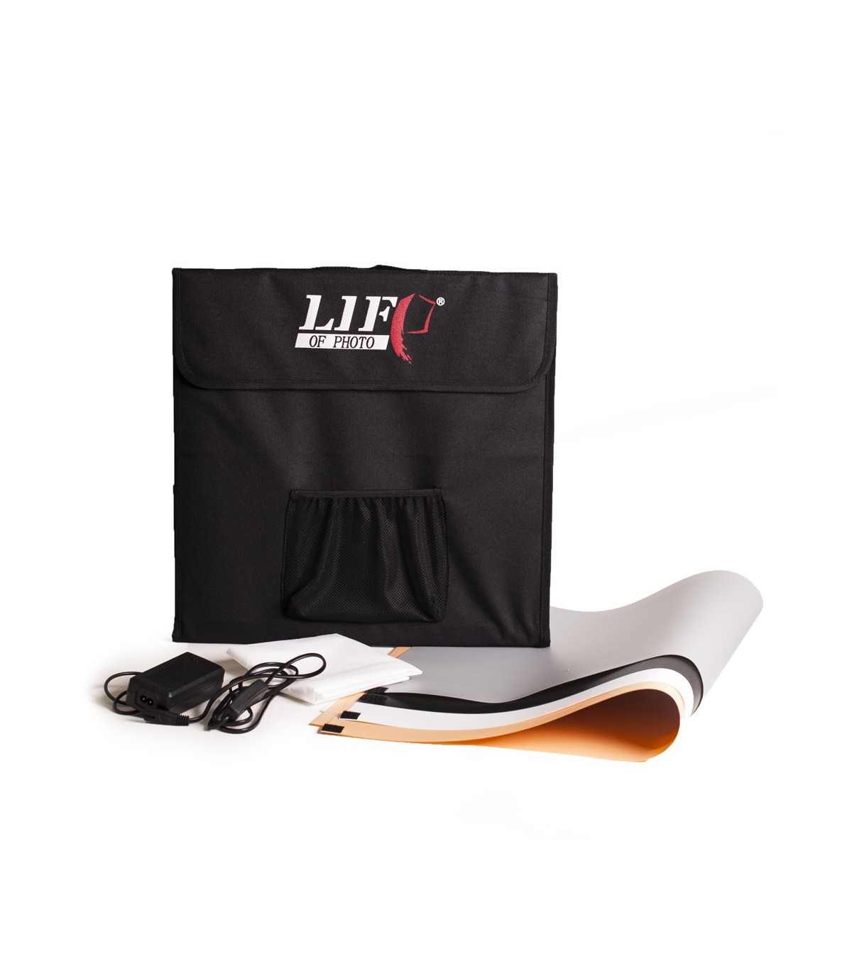 استودیوی پرتابل Life of Photo LED660 یک محیط کار جمع و جور و قابل حمل را در اختیار علاقه مندان به عکاسی طبیعت بیجان (Still Life) قرار میدهد. این محصول در واقع یک کیف است که بعد از باز شدن به یک خیمه عکاسی با یک منبع نور LED تبدیل میشود و چهار پسزمینه سفید، مشکی، نارنجی و خاکستری را ارائه میدهد. در واقع این محصول را میتوان یک استودیوی در جعبه معرفی کرد که یک منبع نور LED از بالا آن را همراهی میکند. در این محصول یک پنل دیفیوزر برای پخش نور در مقابل LED قرار گرفته که با استفاده از آن میتوان نور خروجی را تا حد زیادی نرم و ملایم کرد. همچنین پس از اتمام کار، این جعبه به راحتی جمع میشود و به حالت اول خود برمیگردد. از دیگر ویژگیهای این محصول جدا شدن بسیار راحت LED و خارج کردن آن از داخل محفظه است.
