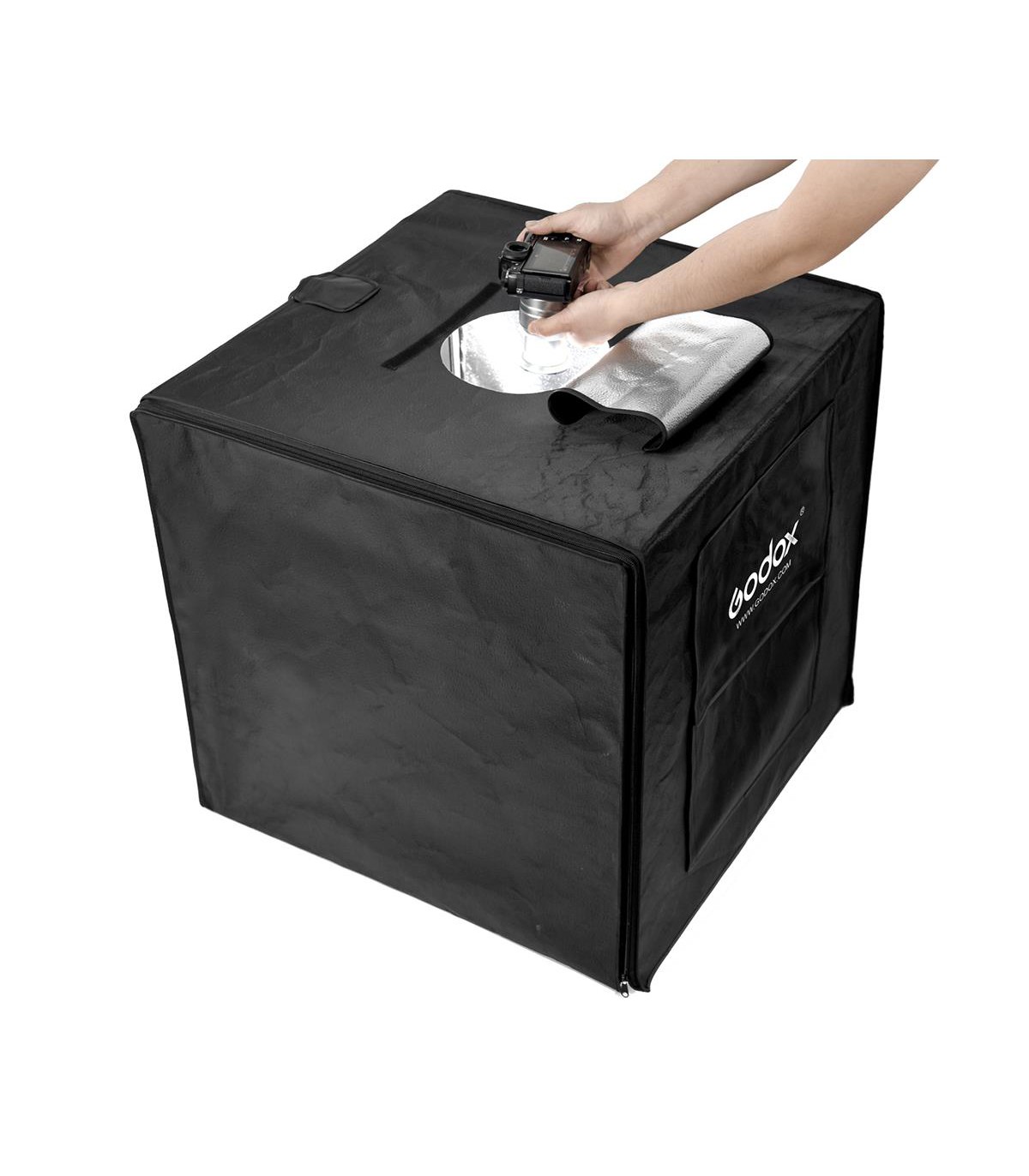 خیمه نور گودکس مدل LSD80 ابزاری ایدهآل برای عکاسی از محصولات است. در بخش داخلی آن ۲ ردیف نور LED تعبیه شده است که قابلیت جابهجایی و تنظیم دقیق زاویه تابش را در اختیار شما قرار میدهند. توان این محصول برابر ۴۰ وات بوده و میتوانید شدت نور آن را از ۱۰۰۰۰ تا ۱۱۰۰۰ لومن تغییر دهید. ضمن اینکه امکان کنترل هرکدام از ردیفهای LED بهصورت جداگانه وجود دارد. برای عکاسی از محصولات، با استفاده از این دستگاه میتوانید هم از بخش جلویی و هم از بالا به عکاسی بپردازید. بنابراین دست کاربر در عکاسی باز خواهد بود. استاندارد CRI این خیمه نور گودکس بالای ۹۶ و استاندارد TLCI آن بالای ۹۸ است که دقت نوری بسیار خوبی را برای شما به ارمغان خواهد آورد. شکل ظاهری محصول بهصورت مکعب مربع بوده و هر ضلع آن دارای طول ۸۰ سانتیمتر میباشد.