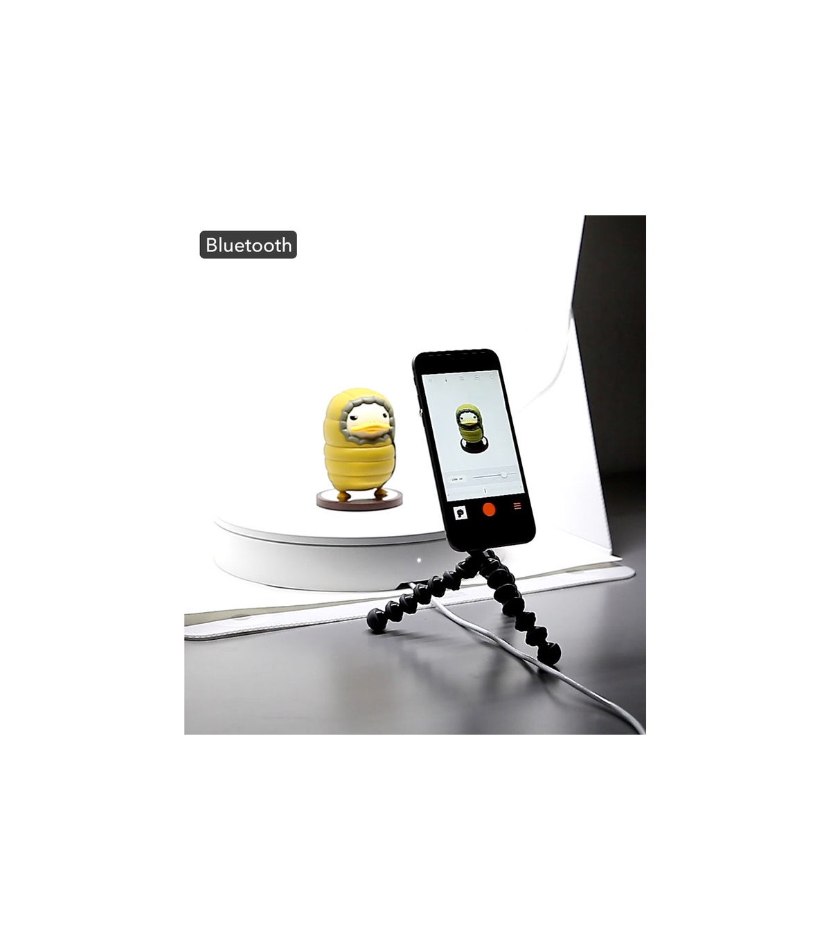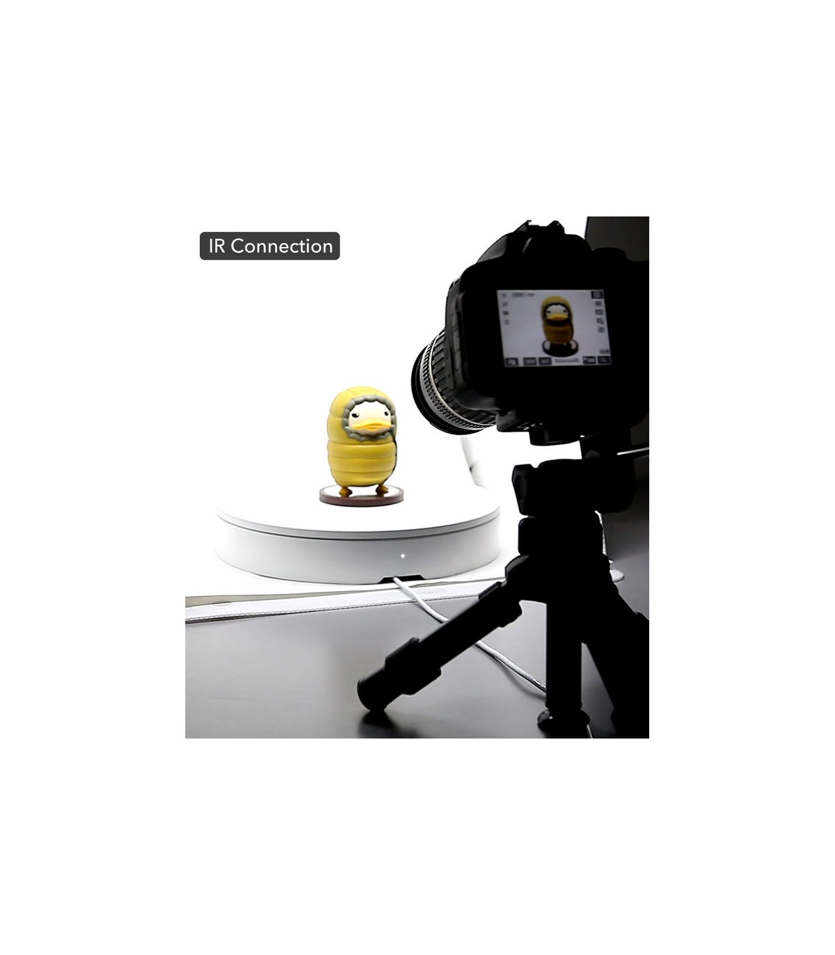پایه چرخش خودکار ثبت تصاویر ۳۶۰ درجه Orangmonkie Foldio360 از بلوتوث و حسگرهای مادون قرمز برای اتصال مستقیم به گوشی هوشمند یا دوربین بدون آینه/DSLR بهره میبرد. برای شروع فرایند عکاسی، فشردن یک دکمه کافیست. از آن پس پایه به صورت خودکار محصول را میچرخاند و به گوشی یا دوربین دستور عکاسی میدهد تا در نهایت یک فایل ۳۶۰ درجه برای انتشار در وبسایت ایجاد شود.