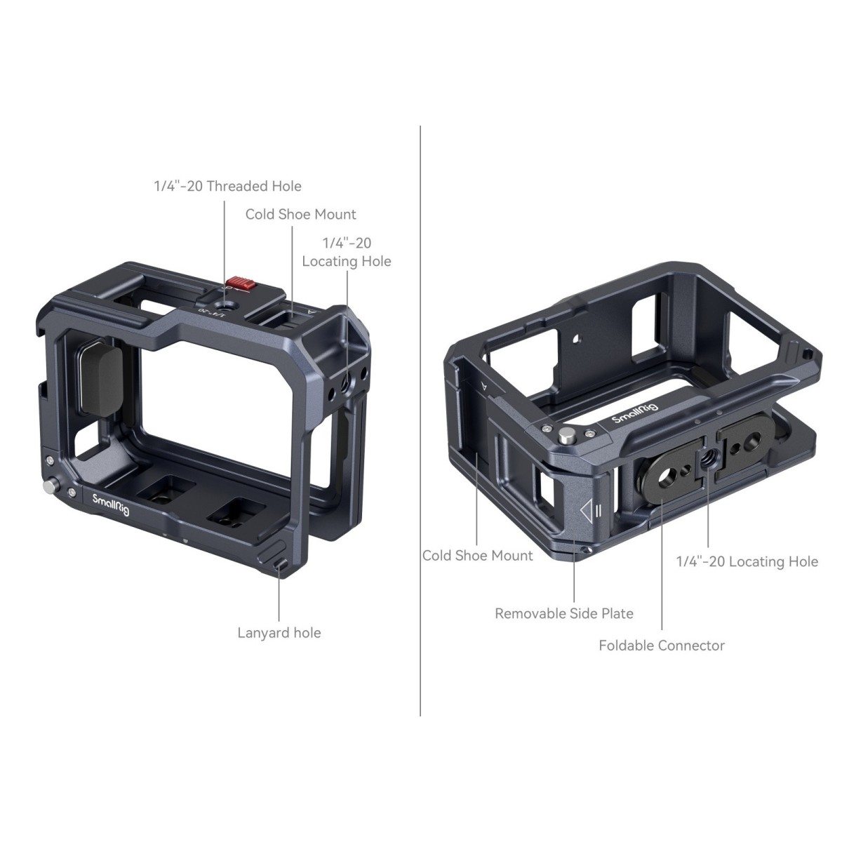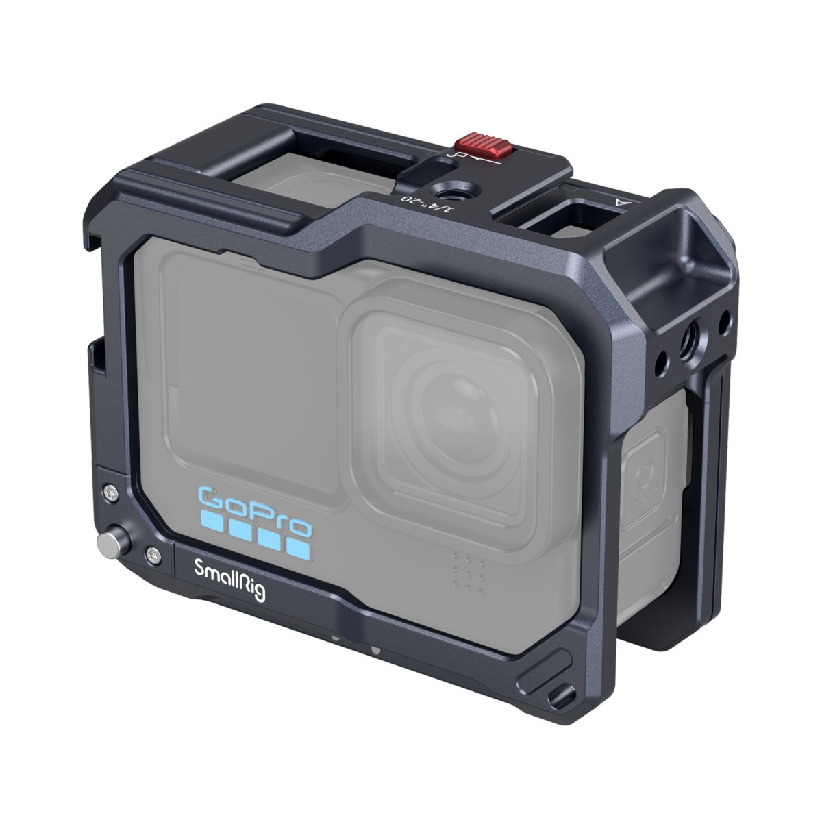 SmallRig 3084C نه تنها با لوازم جانبی حرفهای سازگار است، بلکه به شکلی طراحی شده که بتوانید همچنان از تجهیزات اصلی GoPro نیز استفاده کنید. پایهی تاشوی مخصوص GoPro در زیر کیج، امکان نصب مستقیم روی نگهدارندههای اصلی این برند را فراهم میسازد. این موضوع باعث میشود کاربر هیچ محدودیتی در استفاده از لوازم جانبی نداشته باشد.
