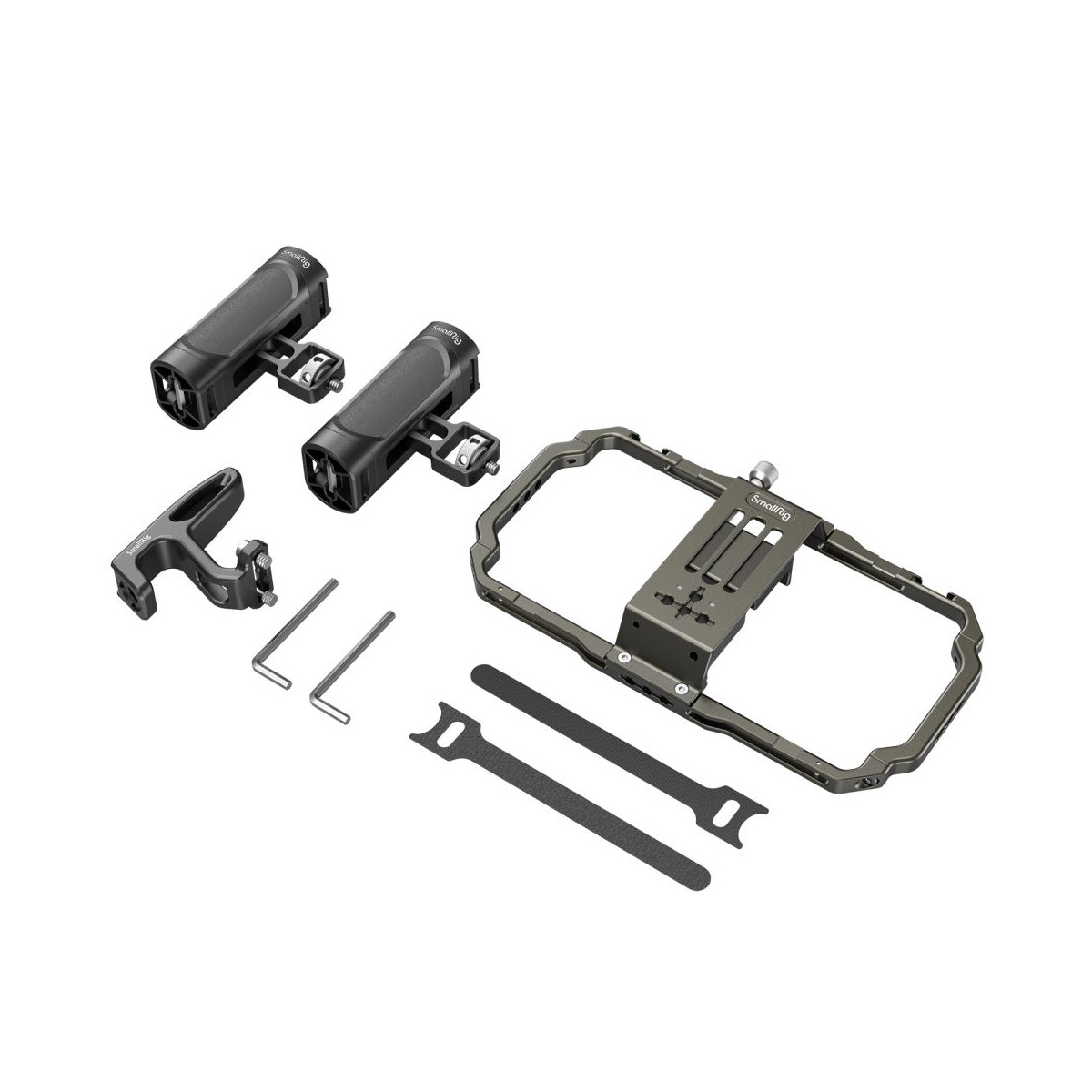 یکی از نقاط قوت اصلی این کیت، امکان اتصال تجهیزات جانبی است. در بالای کیج، دو cold shoe تعبیه شده که به کاربر اجازه میدهد انواع لوازم مثل میکروفونهای خارجی، نور LED یا مانیتورهای کوچک را نصب کند. همچنین چندین رزوه استاندارد 1/4"-20 در بخشهای مختلف وجود دارد که میتوان از آنها برای اتصال به سهپایه، بازوهای جانبی یا دیگر تجهیزات تصویربرداری استفاده کرد.