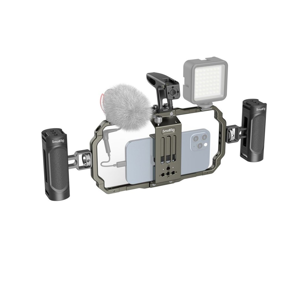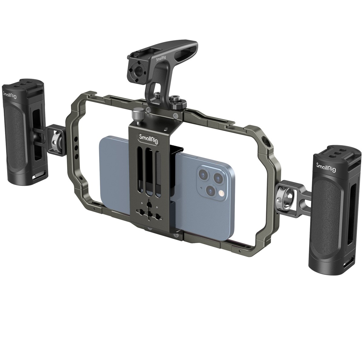 برای کسانی که تجربه فیلمبرداری دستی با موبایل را دارند، بزرگترین مشکل، لرزش دست و نبود کنترل پایدار است. SmallRig این مشکل را با طراحی دو دسته جانبی و یک دسته بالایی (Top Handle) حل کرده است.