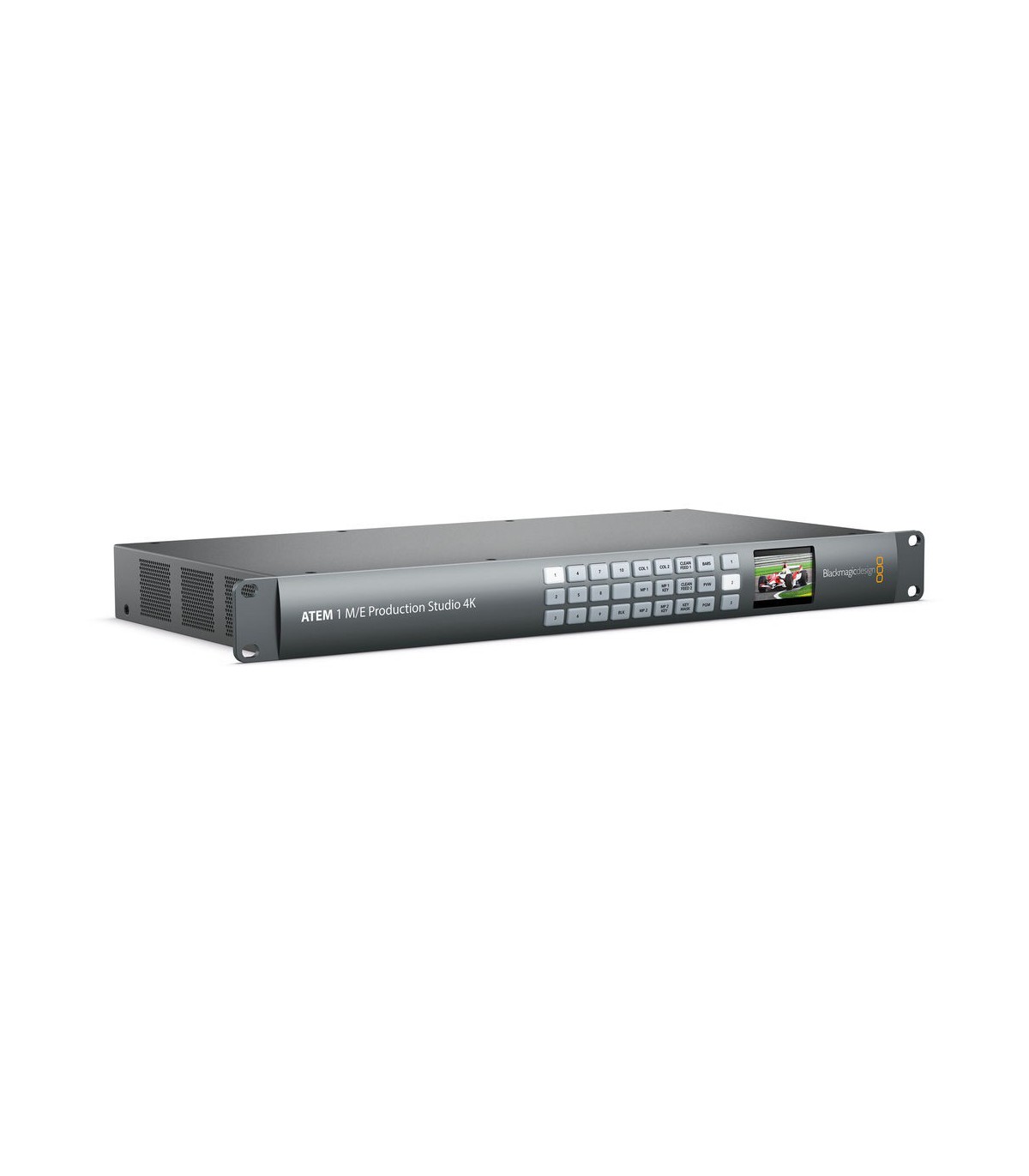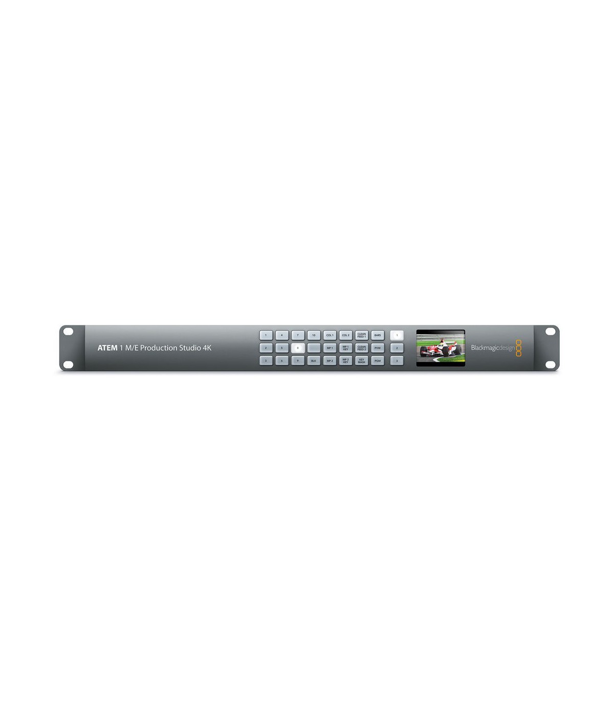 ATEM 1 M/E Production Studio 4K بلک مجیک یک سوئیچر با سایز استاندارد 1RU برای کنترل مستقیم تعداد زیادی تصویر دریافتی از دوربینها، از طریق ۱۱ ورودی جداگانهی باکیفیت است. پشتیبانی از استانداردهای NTSC/PAL/HD و اولترا اچدی تضمینکننده سازگاری آن با طیف گستردهای از دوربینها و دیگر سیستمهااست که تهیه برنامه با کیفیت HD، SD و یا اولترا اچدی را ممکن میسازد. تمام این مراحل و همگام سازیها در لحظه و بدون وقفه انجام میگیرند.