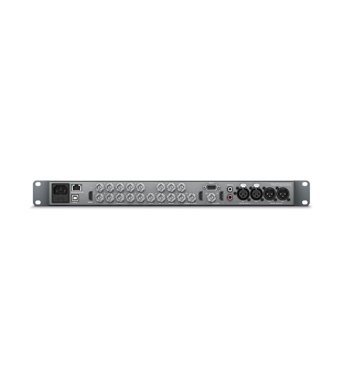 ۱۰ ورودی این سوئیچر از نوع 6G-SDI است که یک مورد از آنها قابل جایگزینی با یک ورودی HDMI میباشد. این سوئیچر دارای هشت خروجی تصویر همواره فعال است. دو خروجی SDI و یک خروجی HDMI که هردو توانایی ارسال تصاویر SD/HD/Ultra HD را دارند بعلاوه یک خروجی تصویر بدون درج هیچگونه موارد گرافیکی ضمیمه شده به تصویر، از جملهی این خروجیها هستند. یک خروجی هم مختص کاهش ابعاد تصاویر بزرگتر از HD است که برای نمایش تصاویر متناسب با مانیتورهای HD تعبیه شده است.