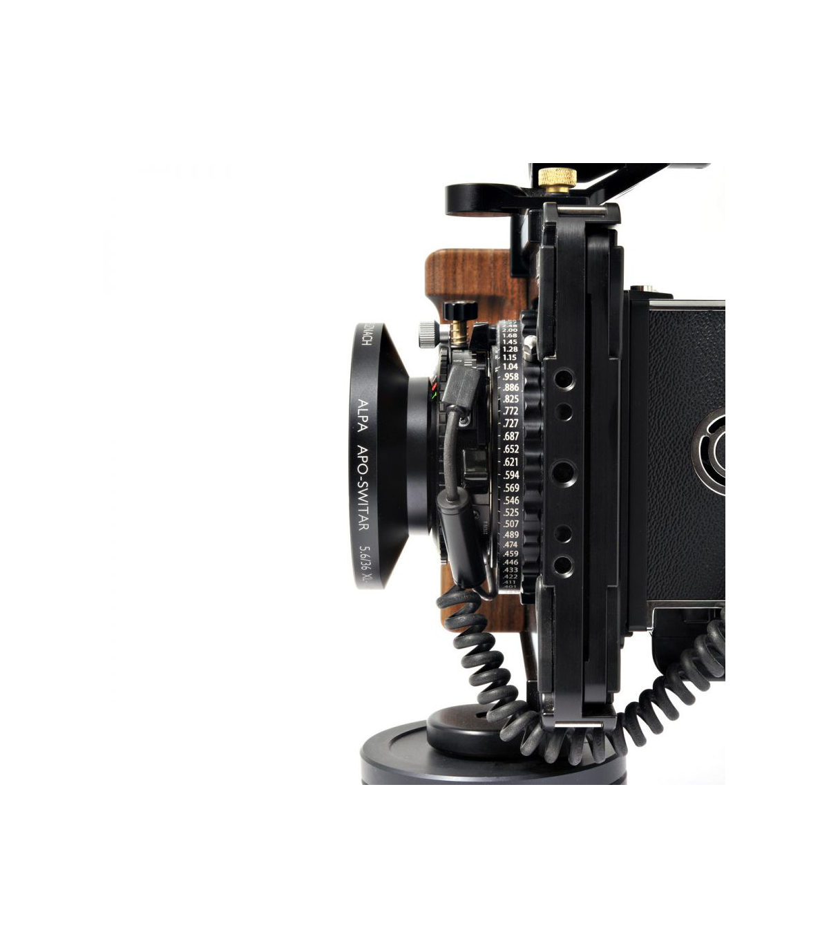 دوربین آلپا STC (دوربین کوچک سفر با قابلیت شیفت) بنا بر استانداردهای دوربینی بسیار کوچک و سبک با قابلیت کنترل پرسپکتیو (شیفت) ساخته شده است.تمام بکهای دیجیتال موجود در بازار را میتوان با استفاده از مبدلهای مناسب بر روی این دوربین به کار گرفت و افرادی که تمایلات سنتیتری دارند، میتوانند از بکهای فیلم رول تا اندازه ۹x۶ سانتیمتر استفاده کنند که امکان عکاسی بدون نیاز به الکتریسیته را فراهم میآورد.