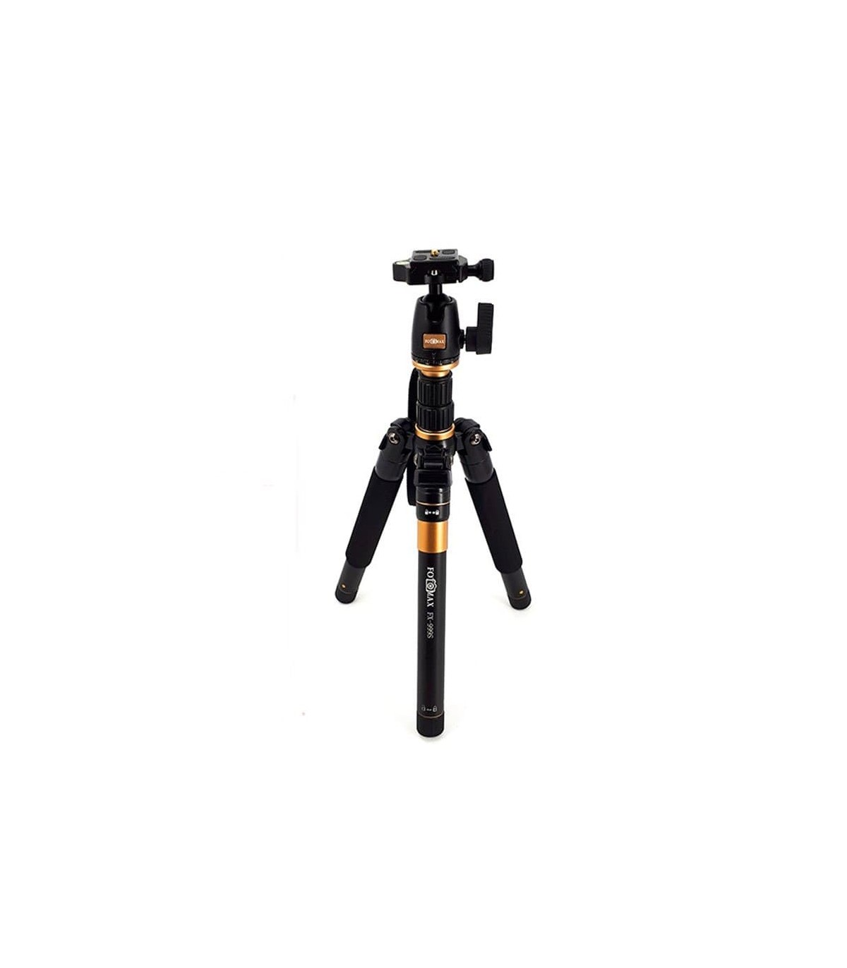 سه پایه آلومینیومی فوتومکس مدل Fotomax Q999S یک سه پایه سبک با قابلیت های متعدد است. هد این محصول از نوع بال هد است و قابلیت چرخش 360 درجه ای دارد. با 1.2 کیلوگرم وزن و ارتفاع 44 سانتی متر در حالت جمع شده، جابجایی این سه پایه بسیار آسان و مناسب است؛ مخصوصا که به همراه این محصول یک کیف حمل و نقل نیز ارائه شده است. سیستم قفل پایه های این محصول از نوع پیچشی است و هر پایه از 3 قطعه تشکیل شده که به صورت تلسکوپی باز و بسته می شوند. حداکثر ارتفاع این سه پایه 144 سانتی متر و حداقل ارتفاع آن نیز تنها 10 سانتی متر است که استفاده از آن را برای عکاسی ماکرو و از نزدیک مناسب می کند. وضعیت هد به وسیله پیچ های مخصوص تعبیه شده بر روی آن قابل تثبیت است. ارتفاع سه پایه نیز با استفاده از ساز و کار پیچشی قابل قفل کردن است تا وضعیت سه پایه تغییر نکند. این محصول قابلیت تبدیل شدن به تک پایه را دارد و حداکثر وزن قابل تحمل توسط آن برابر 6 کیلوگرم است.