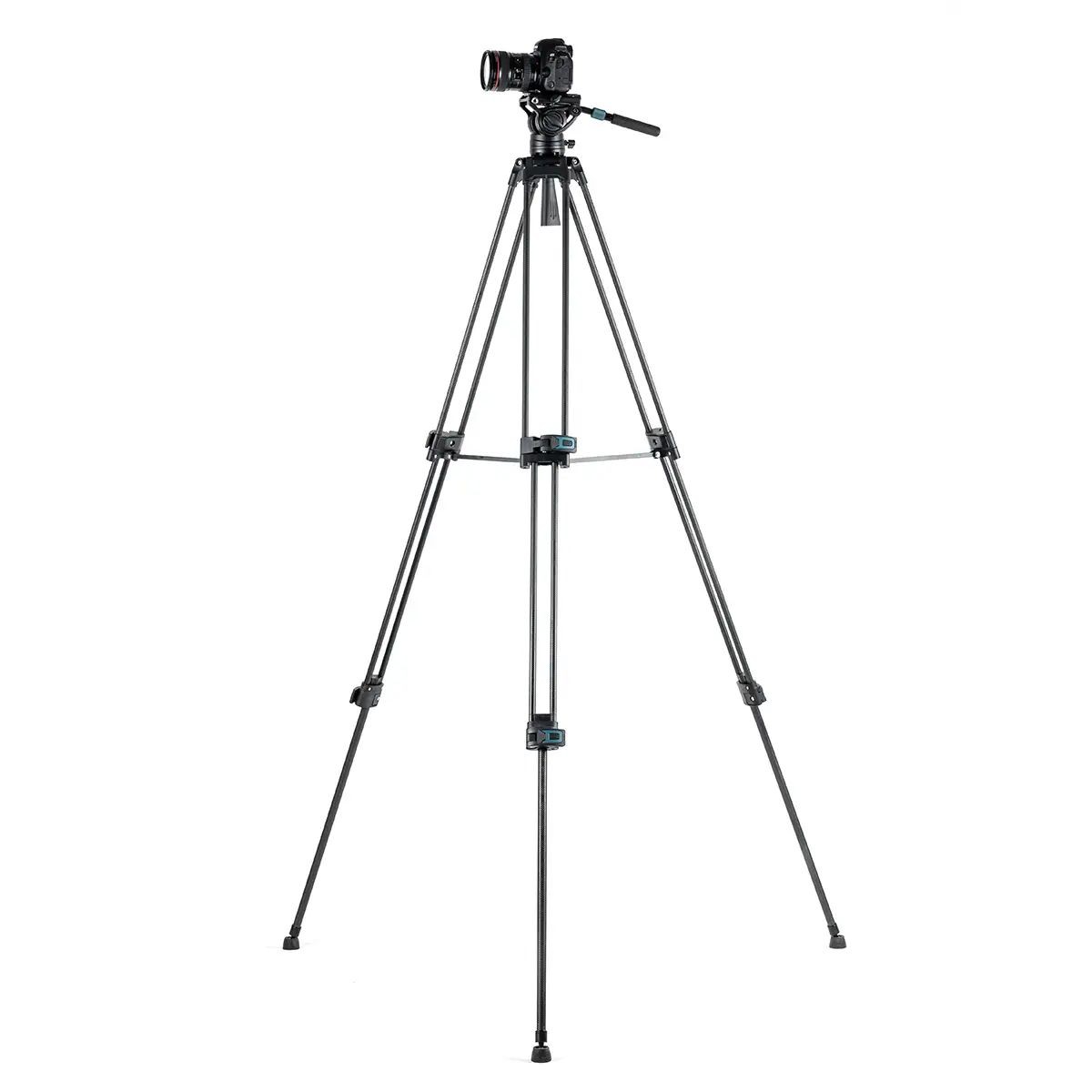 پایهها در سه بخش (3-section) طراحی شدهاند و با قفلهای Flip-Lock ایمن میشوند. این سیستم قفل به کاربران امکان میدهد ارتفاع پایهها را به سرعت تغییر دهند و در عین حال ثبات آن را حفظ کنند. همچنین، وجود اسپریدر میانی (Mid-Level Spreader) موجب افزایش استحکام ساختاری و پایداری سهپایه روی سطوح مختلف میشود.