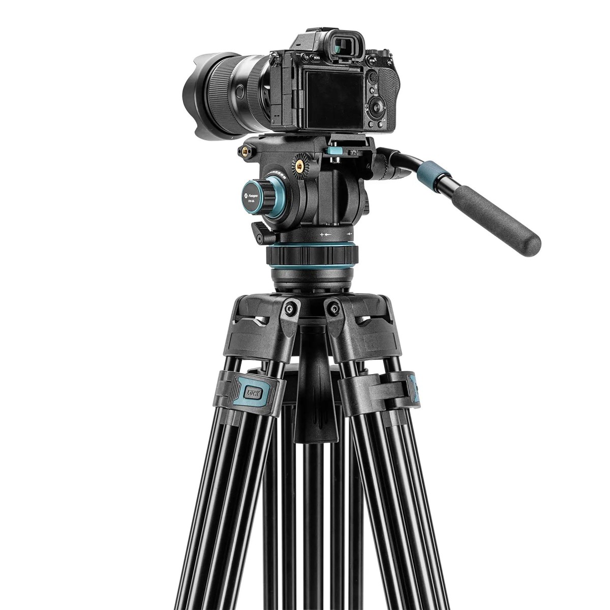 بدنهی این سهپایه از آلومینیوم مستحکم ساخته شده است. انتخاب آلومینیوم باعث شده که وزن محصول در عین استحکام و تحمل بار بالا، نسبتاً متعادل باشد. وزن کلی این سهپایه به حدود ۵ کیلوگرم میرسد که برای یک سهپایهی حرفهای با قابلیت حمل تجهیزات سنگین، عددی منطقی و قابل قبول محسوب میشود. استفاده از آلومینیوم نهتنها مقاومت مکانیکی بالایی ایجاد میکند، بلکه در برابر زنگزدگی و عوامل محیطی نیز دوام بیشتری دارد.
