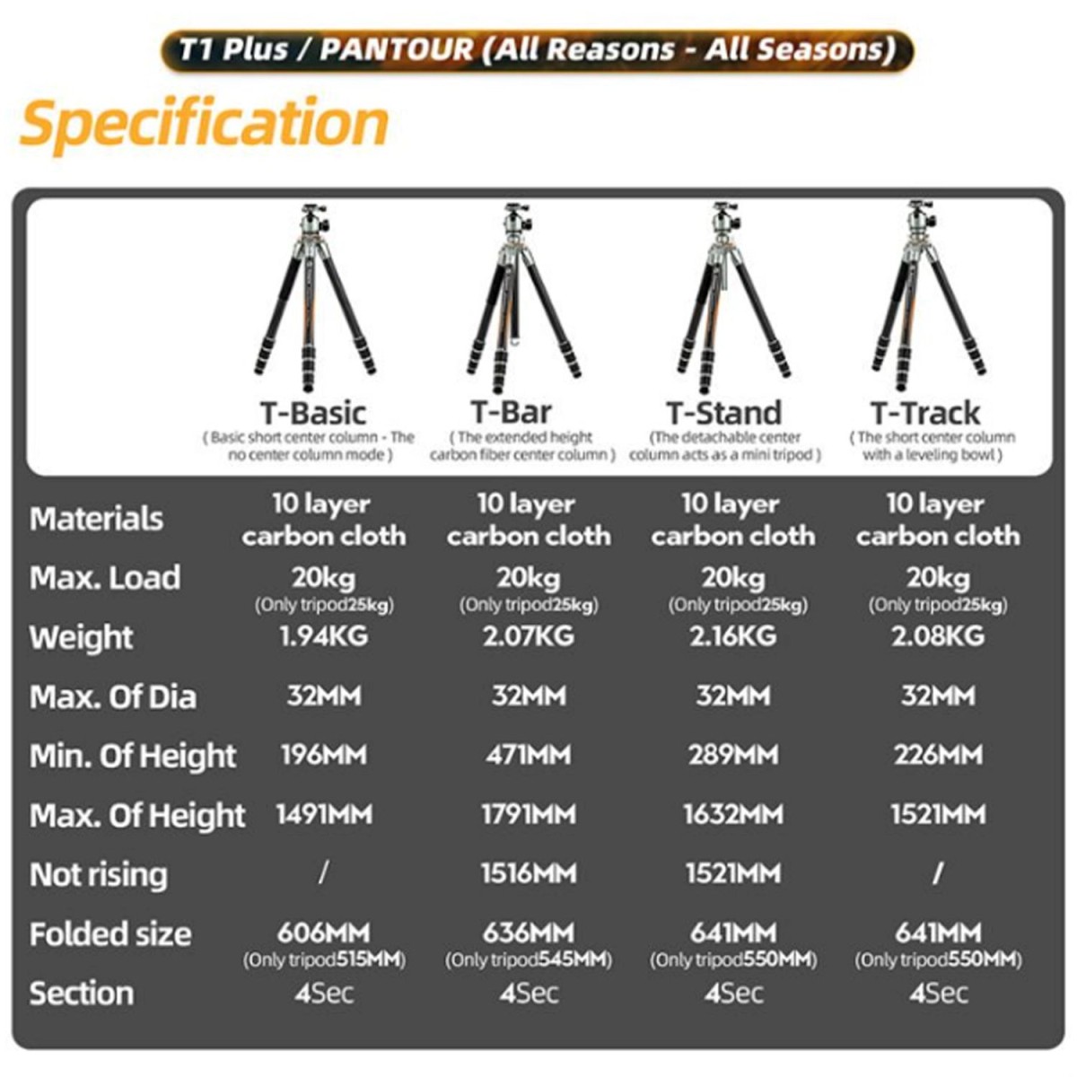 سهپایهی Fotopro T1 Plus فراتر از یک ابزار عکاسی ساده است؛ این محصول یک همراه حرفهای برای ماجراجویان، طبیعتگردان، عکاسان مستند و فیلمبرداران دقیق محسوب میشود. ترکیب بدنهی فیبر کربن ۱۰ لایه، تحمل وزن بالا، طراحی ضدآب و ضدگردوغبار، مقاومت در برابر دماهای شدید و انعطافپذیری ارتفاع، آن را به گزینهای ایدهآل در میان سهپایههای حرفهای بازار تبدیل کرده است.