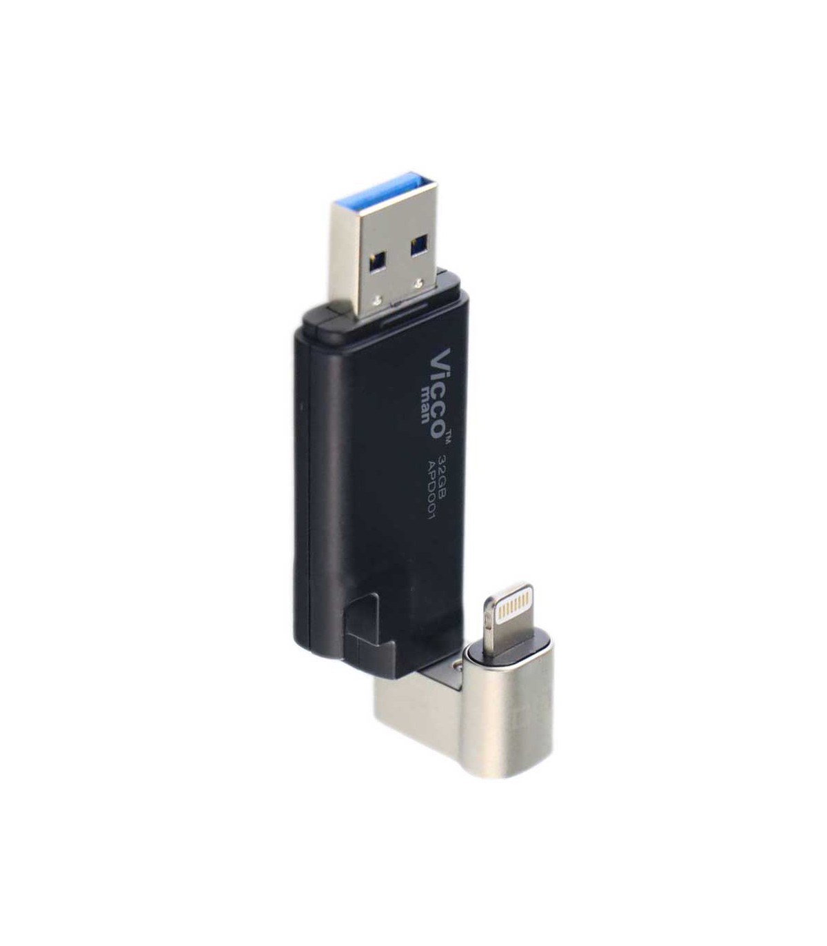 فلش مموری ویکومن VC150 یک مموری OTG با درگاه لایتنینگ است که قابلیت استفاده در کنار دستگاههای اپل را دارد. طراحی این محصول بصورتی است که در هنگام اتصال به درگاه لایتنینگ، فلش مموری در نزدیکترین فاصله به دیوایس قرار بگیرد تا علاوه بر دست و پا گیر نبودن، ایمنی بالایی نیز داشته باشد. استاندارد سرعت فلش مموری فوق USB 3.0 است که سرعت بالایی را برای کار با محصول امکانپذیر مینماید.