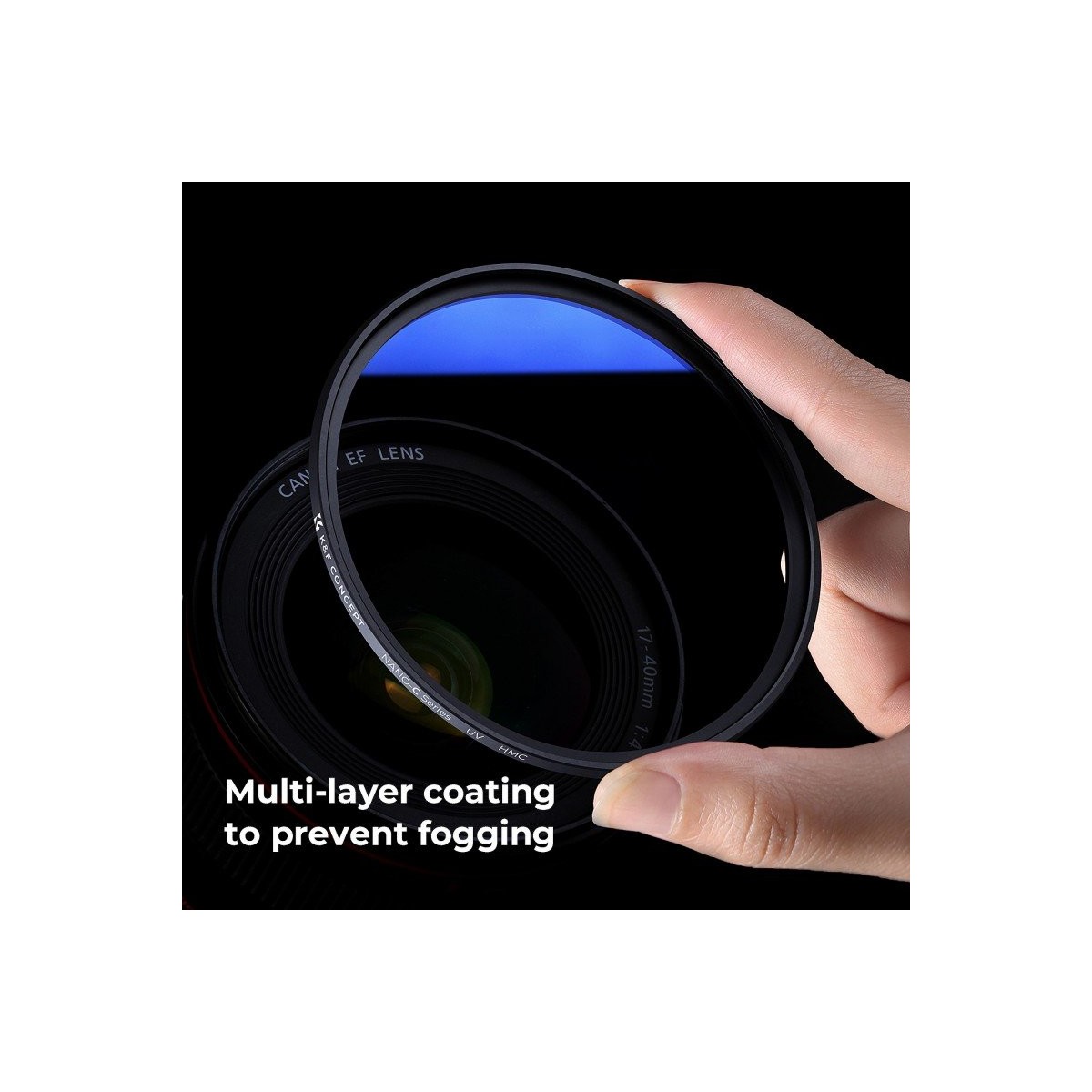 فیلتر K&F Concept Classic HMC UV در سایزهای مختلف عرضه شده و با طیف گستردهای از لنزهای دوربینهای DSLR، بدون آینه (Mirrorless) و فیلمبرداری سازگار است. این فیلتر بدون نیاز به ابزار خاصی، به راحتی روی لنز نصب میشود و در مواقعی که به آن نیاز ندارید، بهسادگی جدا میشود.