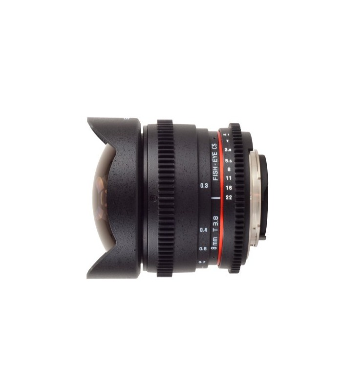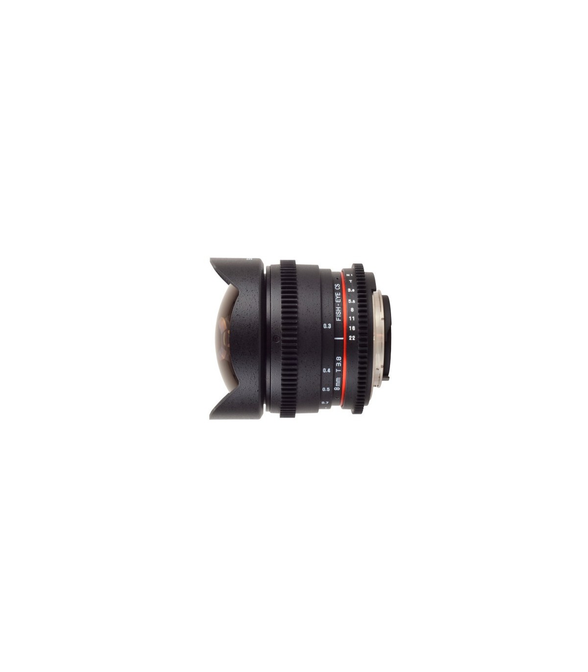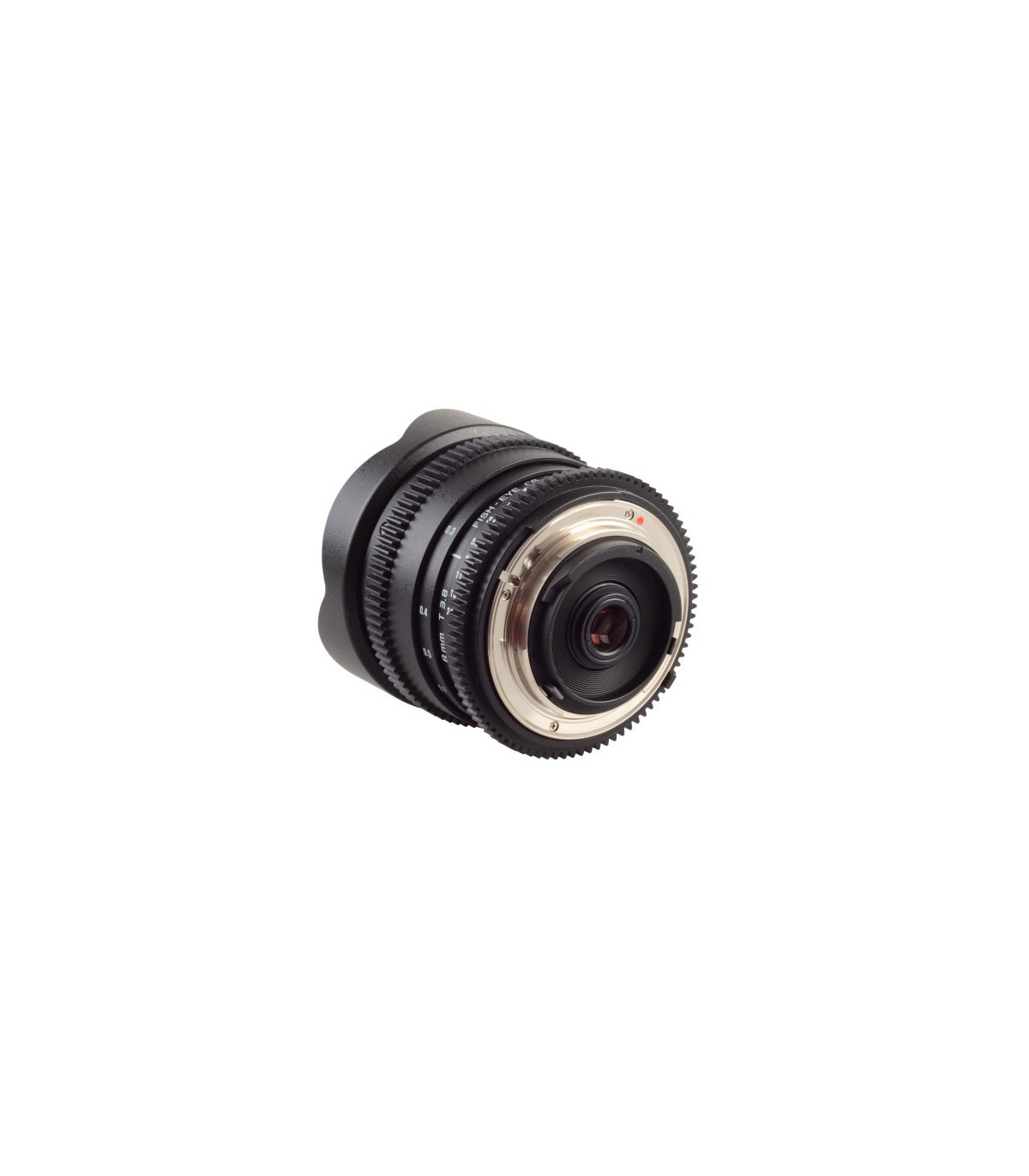 این لنز فیشآی مخصوص دوربینهای قطع APS-C یا DX است. طراحی اپتیکی منحصربهفرد این لنز از 10 عنصر در 7 گروه تشکیل شده است. ساختار لنز بر اساس لنز Samyang 8mm f/3.5 Fisheye CS است و برای استفادهی سینمایی طراحی شده است. این لنز میدان دید 180درجهای قطری دارد. طراحی بدنهی لنز مشابه لنزهای سینمایی است و اطلاعات فوکوس و دیافراگم روی بدنهی لنز بهخوبی مشخص هستند. چرخدهندههای مناسب برای سیستمهای فالوفوکوس (Follow Focus) روی لنز تعبیه شدهاند.