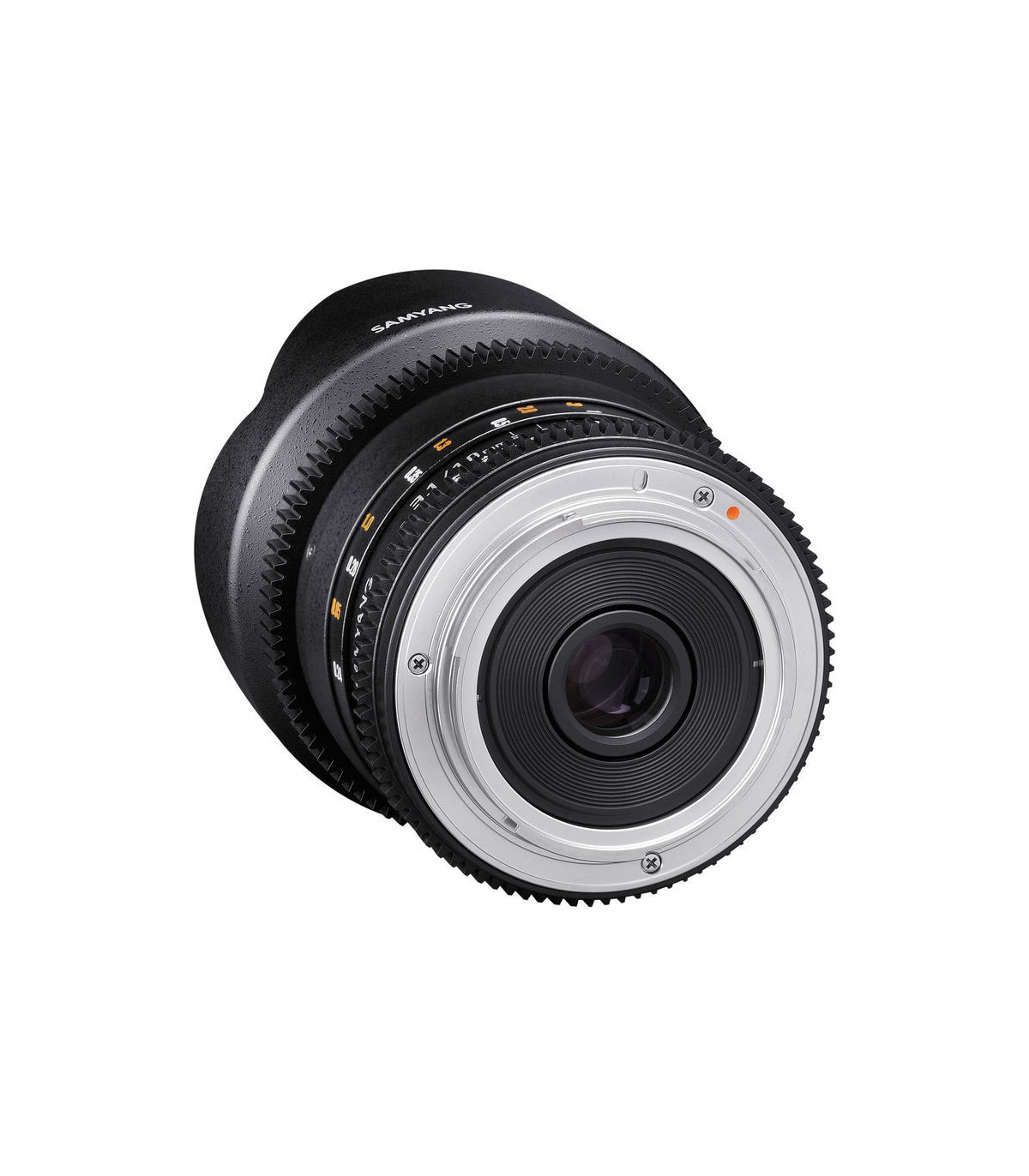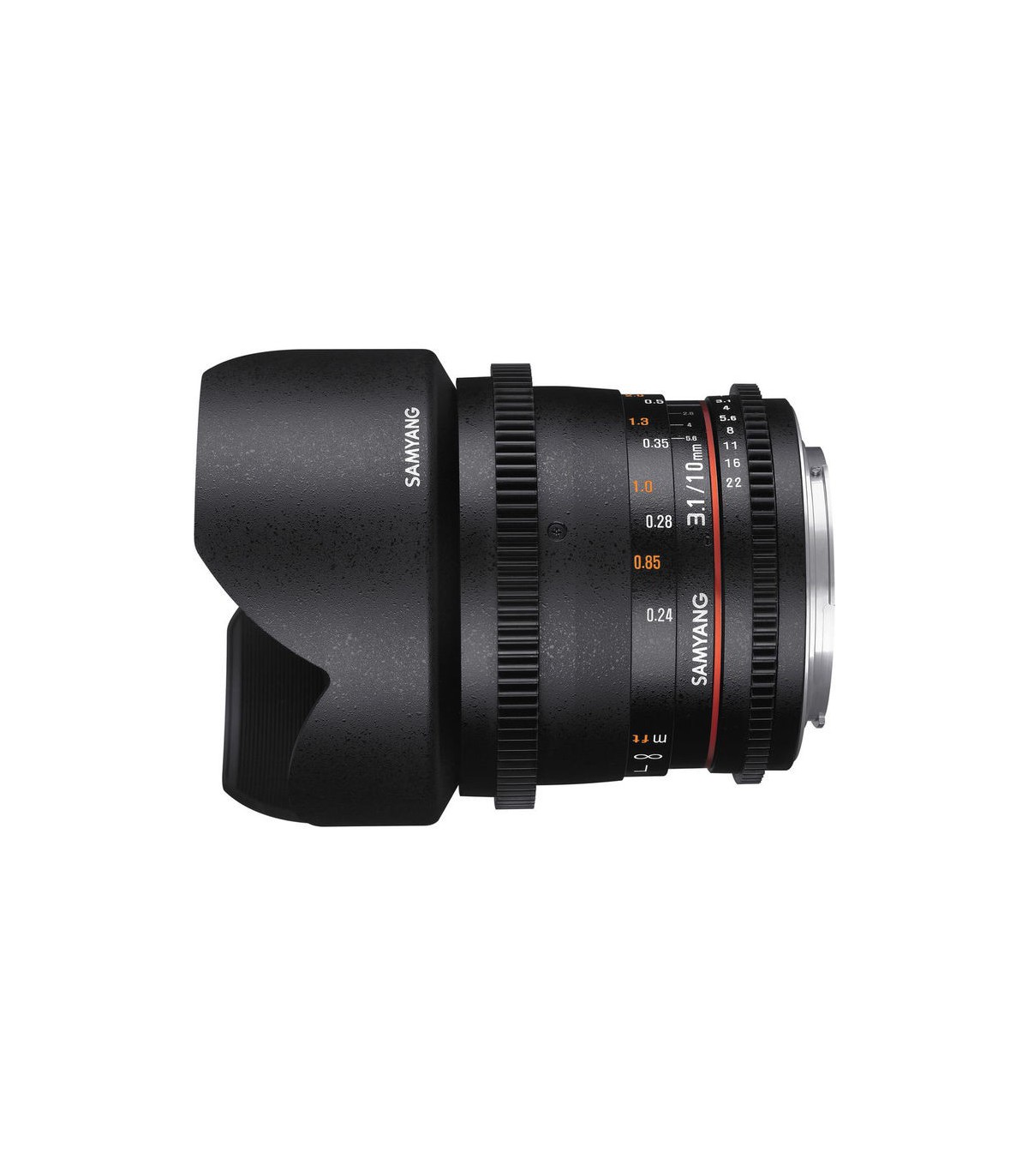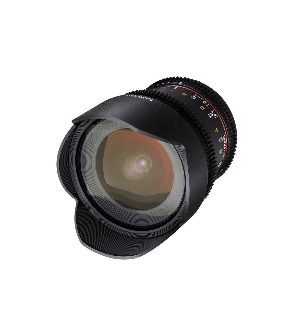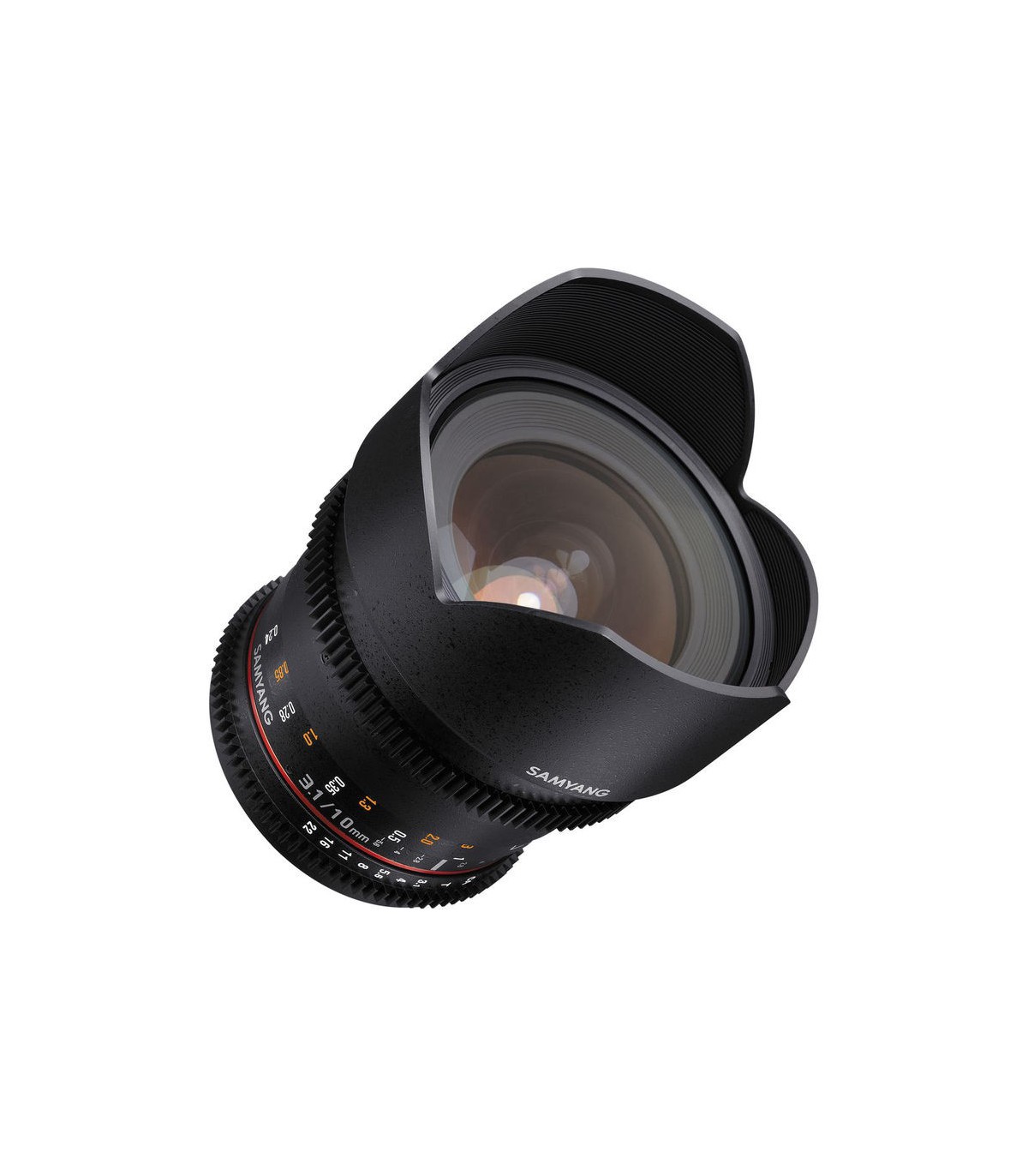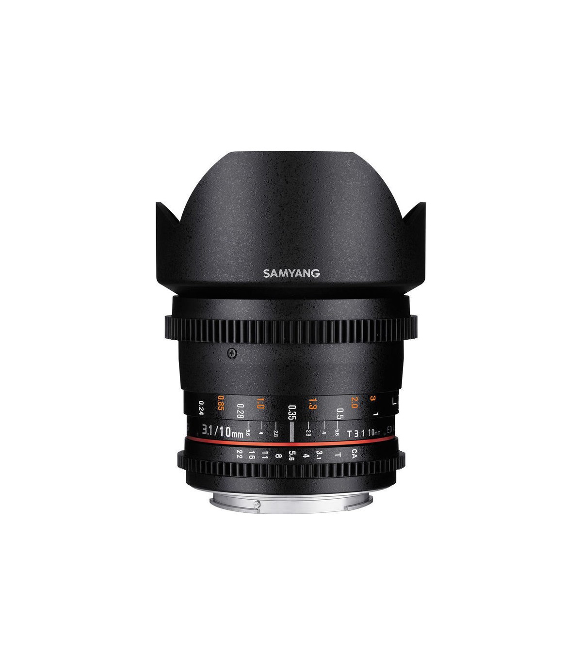 لنز Samyang 10mm T3.1 VDSLR یک لنز واید پرایم با زاویه دید بسیار زیاد است که مخصوص فیلمبرداری با دوربینهای DSLR غیر فولفریم یا APS-C است طراحی شده است. دیافراگم این لنز دارای طراحی De-Clicked است که باعث میشود عمل تغییر دیافراگم برای نوردهی حین فیلمبرداری، بسیار نرم و بیصدا انجام پذیرد. رینگهای استاندارد فوکوس دستی و دیافراگم روی بدنه لنزریال طراحی دندانهدار دارند که به شما امکان میدهد تا به سادگی از ابزارهای جانبی مخصوص لنزها مانند موتور فوکوس لنز استفاده کرد.