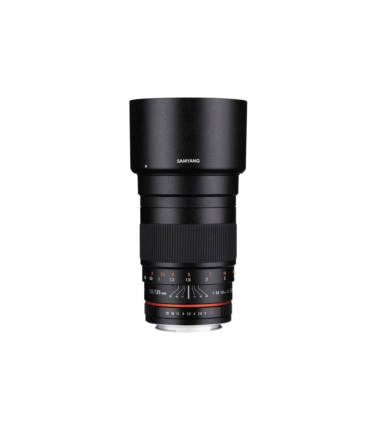 لنز Samyang 135mm f/2.0 ED UMC با دیافراگم f/2.0 برای عکاسی در نور کم و همچنین عکاسی پرتره بسیار مناسب است. این دیافراگم امکان استفاده از حساسیتهای پایینتر و سرعتهای بالاتر را به کاربر میدهد و همچنین عمق میدان بسیار کم در این دیافراگم پس زمینه و بوکهای بسیار زیبا و ملایم را ایجاد میکند. این لنز با دارا بودن دیافراگمی با 9 تیغه مدور، برای عکاسی از سوژههای خاص مانند عکسهای پرتره بسیار مناسب است. این لنز مخصوص دوربینهای Full-Frame طراحی شده و در صورت استفاده روی دوربینهای با ابعاد حسگر APS-C فاصله کانونی معادل 216mm روی یک دوربین FullFrame را نمایش میدهد.